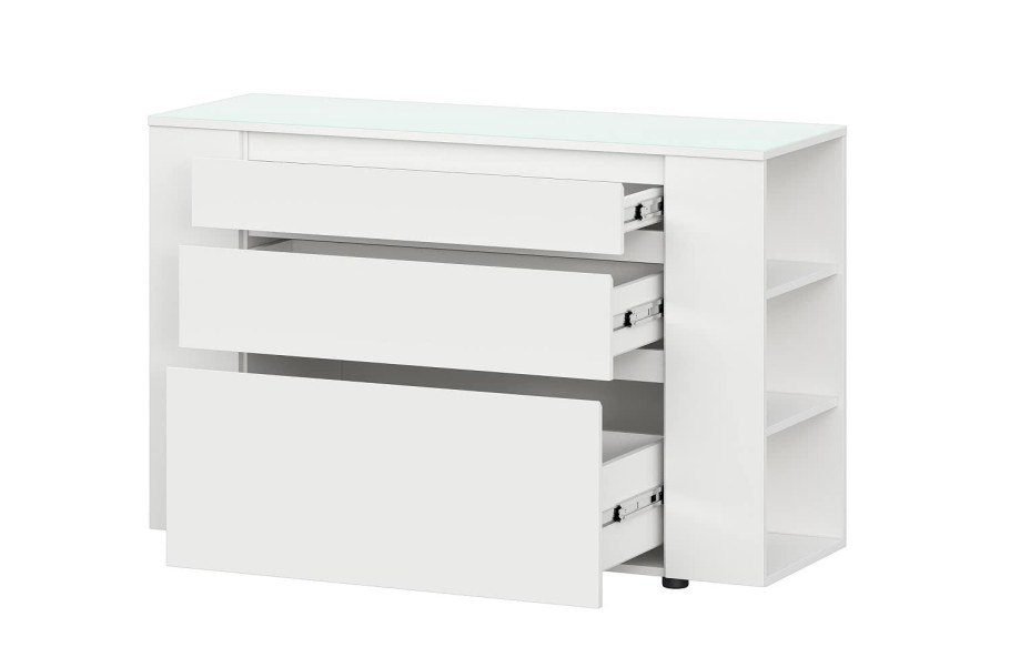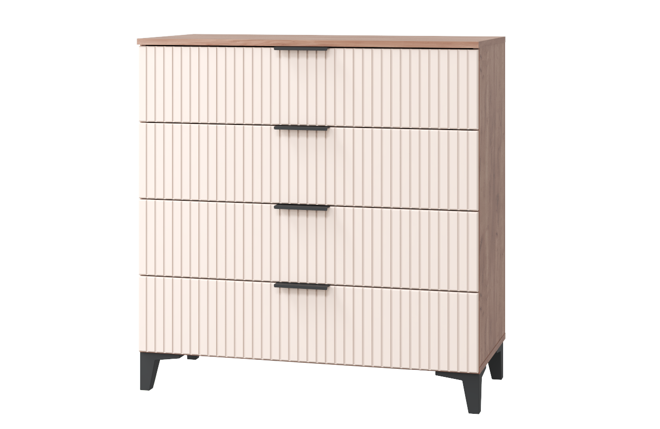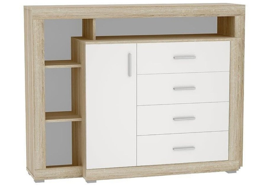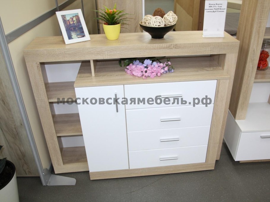 Комод берген км-214 с 4-мя ящиками МДФ белый глянец/дуб сонома