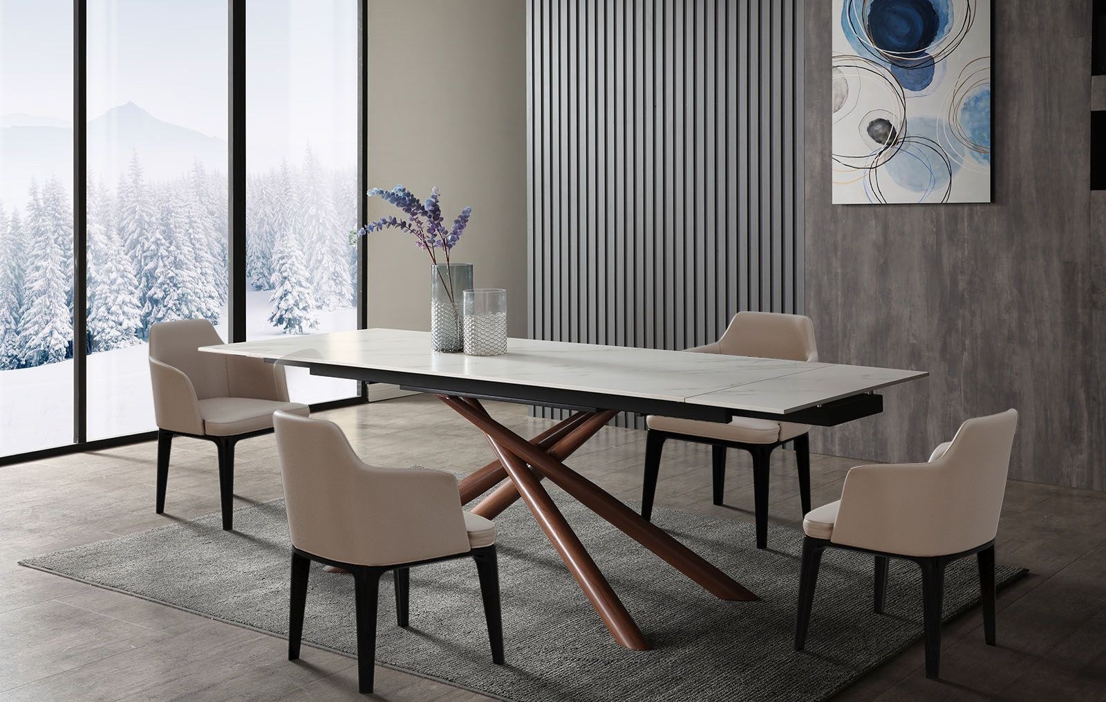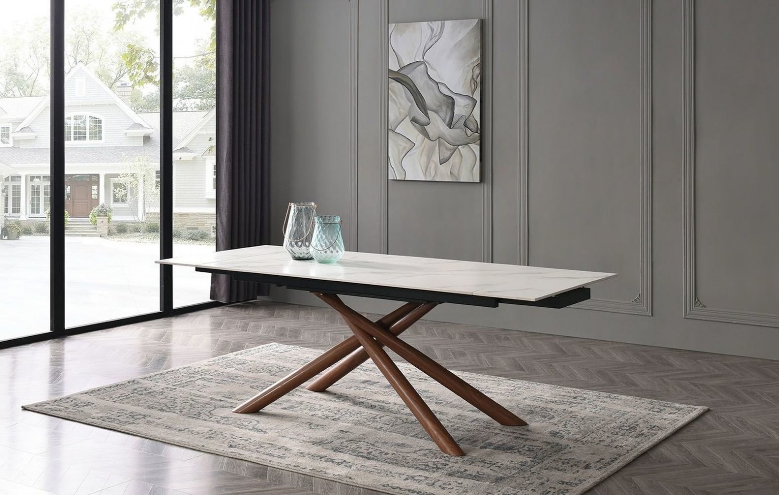 Стол раскладной Ravenna 160-220, белая керамика/орех
