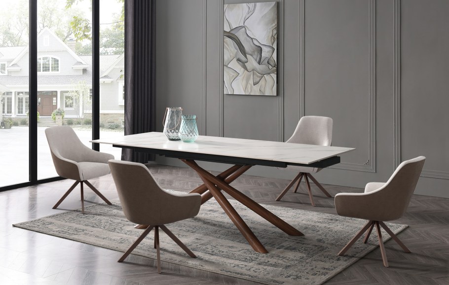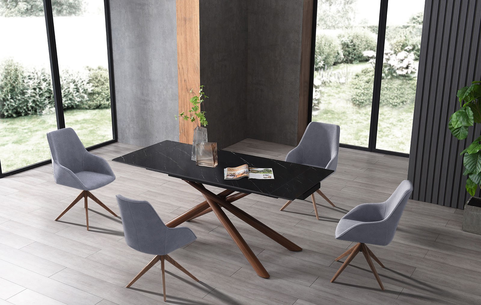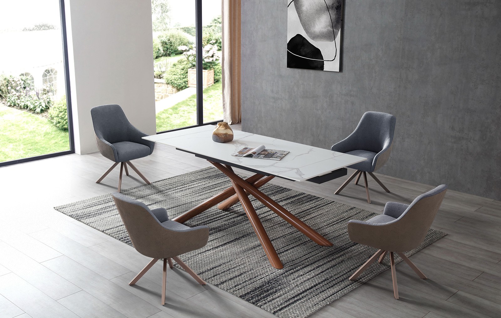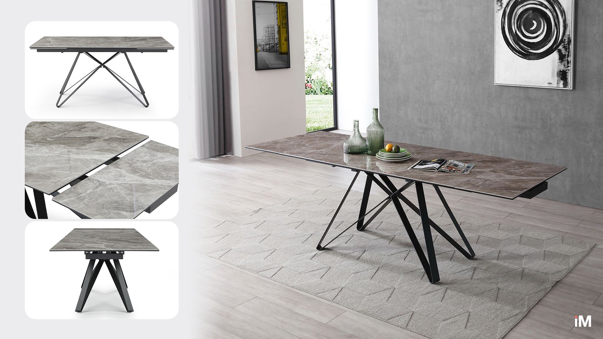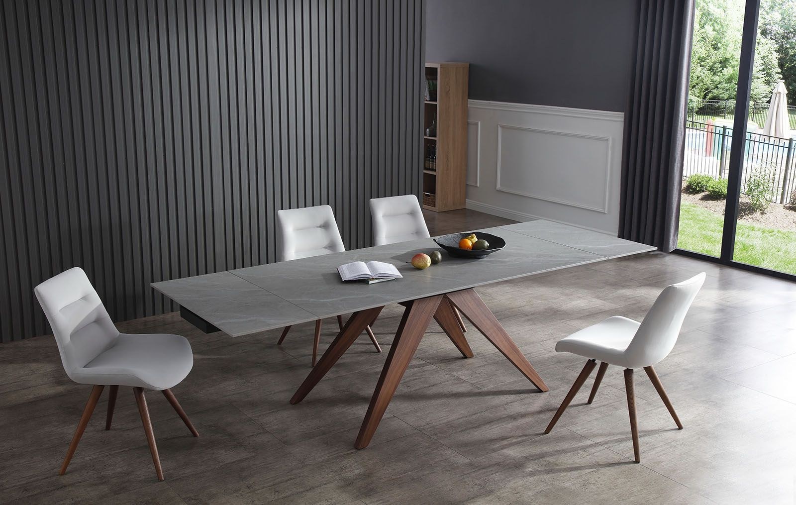 Стол раскладной IMODERN Valencia 120-180, серая керамика/орех, код товара: 108713