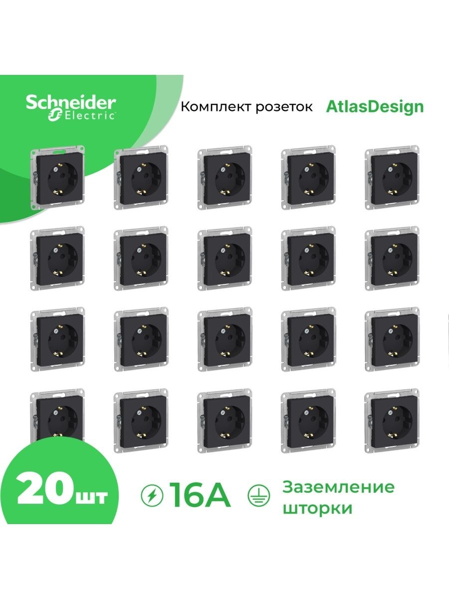 Розетка 1-м СП Blanca 16а ip20 250в с заземл. Без защ. Шторок антрацит sche blnrs001016