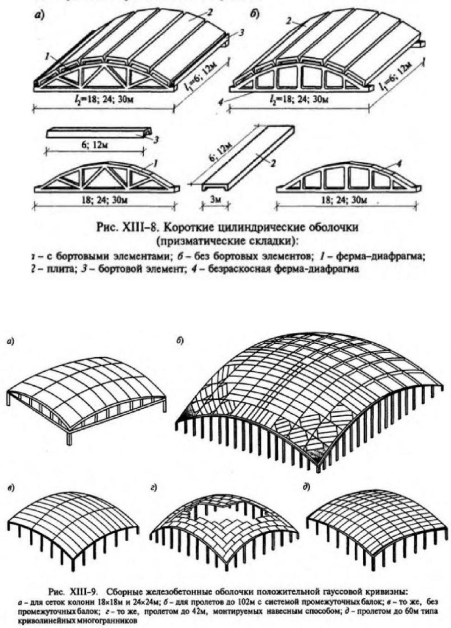 Железобетонные пространственные покрытия (оболочки, арки, складки)