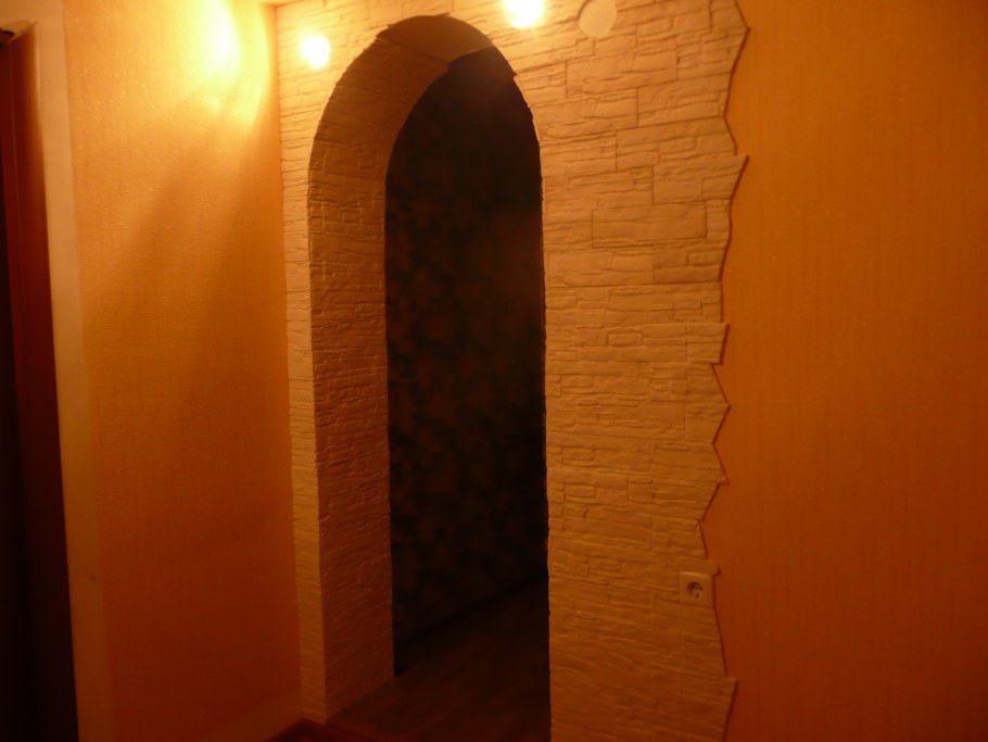Прихожая с декоративным камнем и декоративной штукатуркой