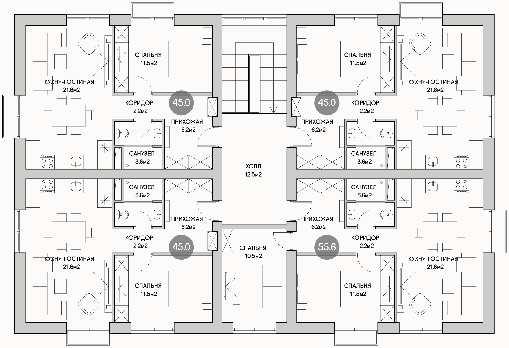 Проекты трехэтажных многоквартирных домов на 12 квартир