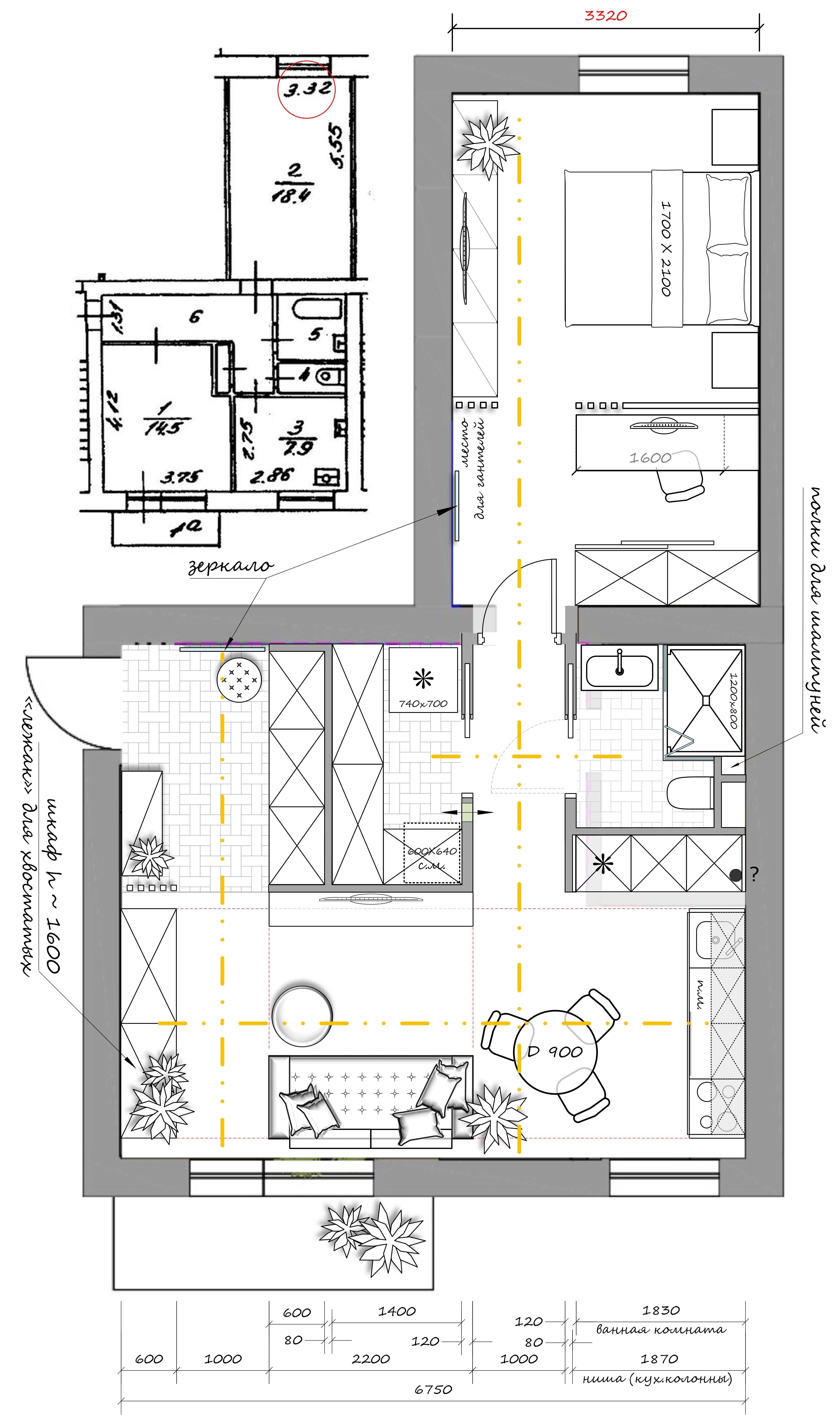 Однушка распашонка планировка