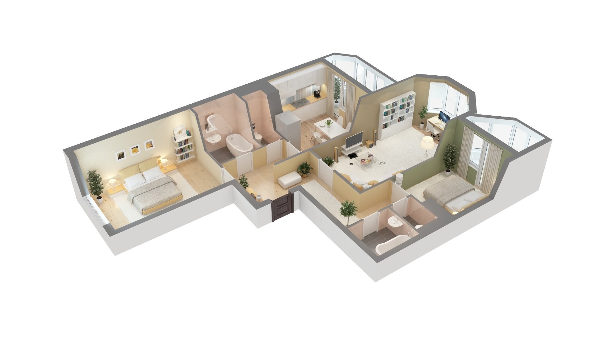 Двухкомнатная квартира распашонка (79 фото)