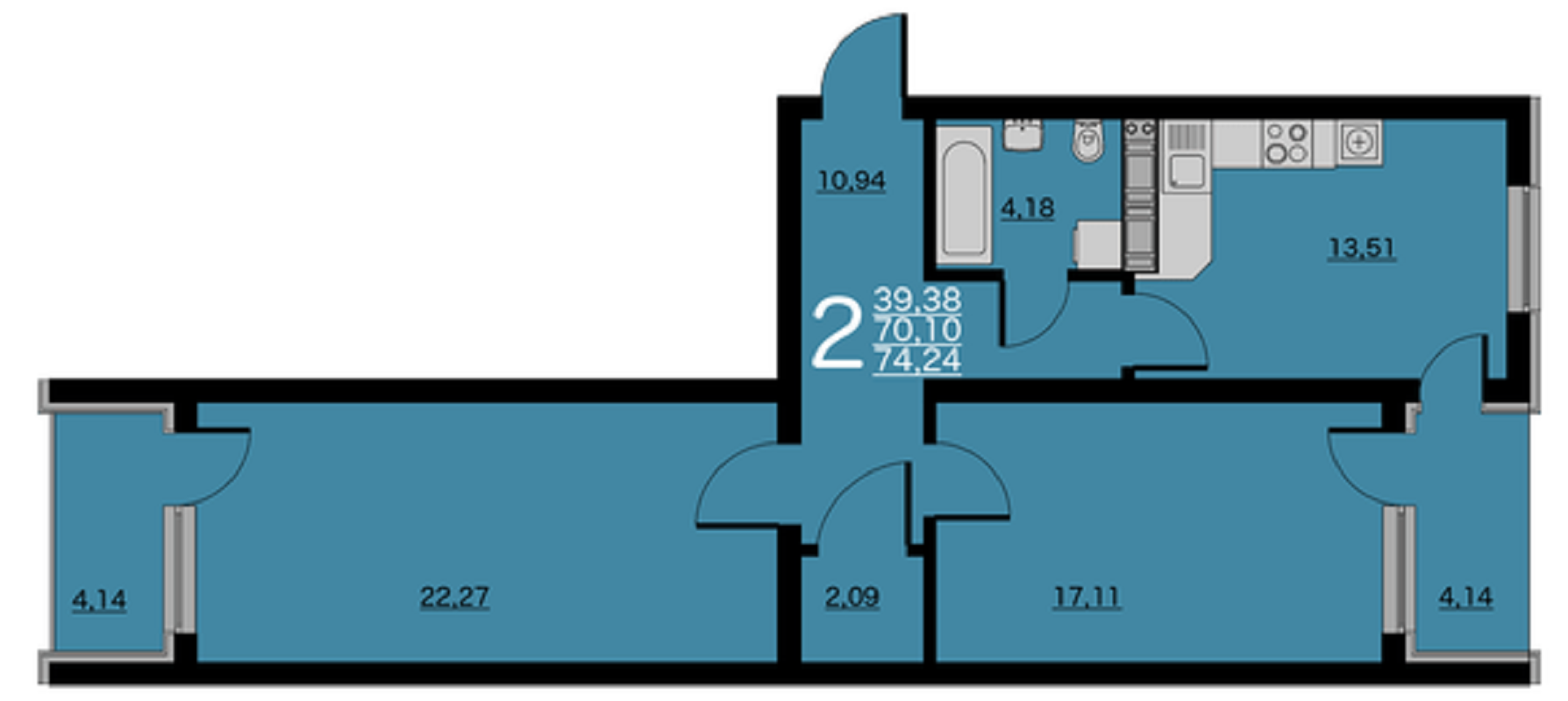 Планировка 2к распашонка ДСК-1