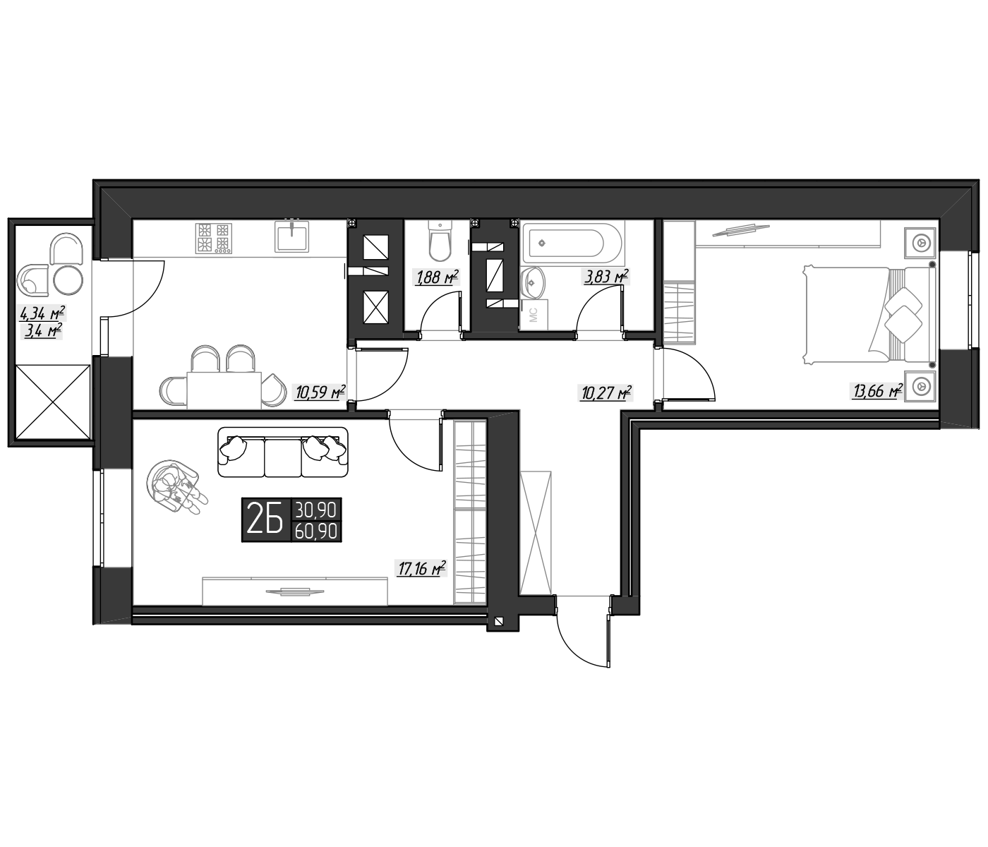 Планировка пик-1 двухкомнатная