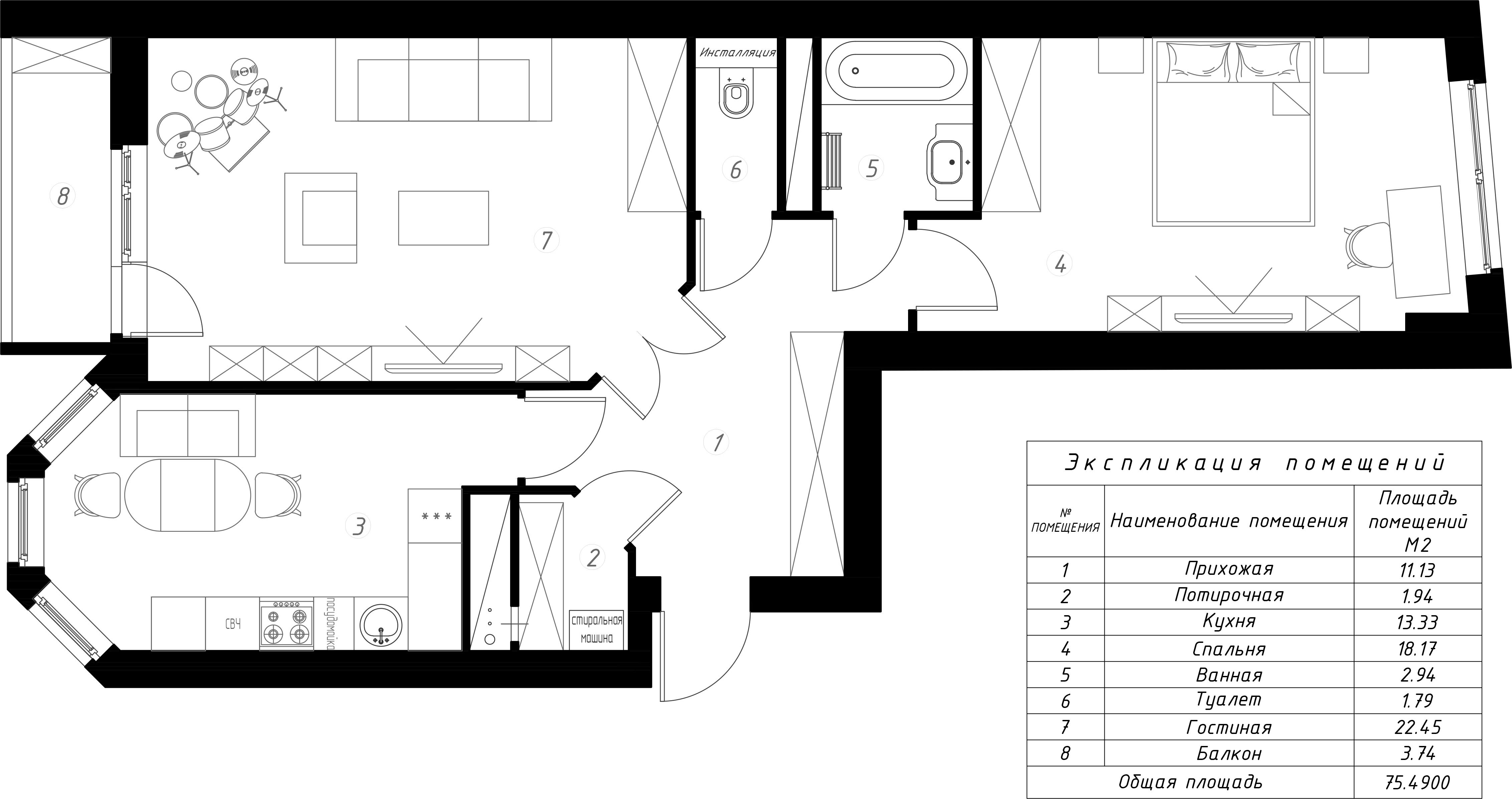 Трешка 65 м2 планировка монолит