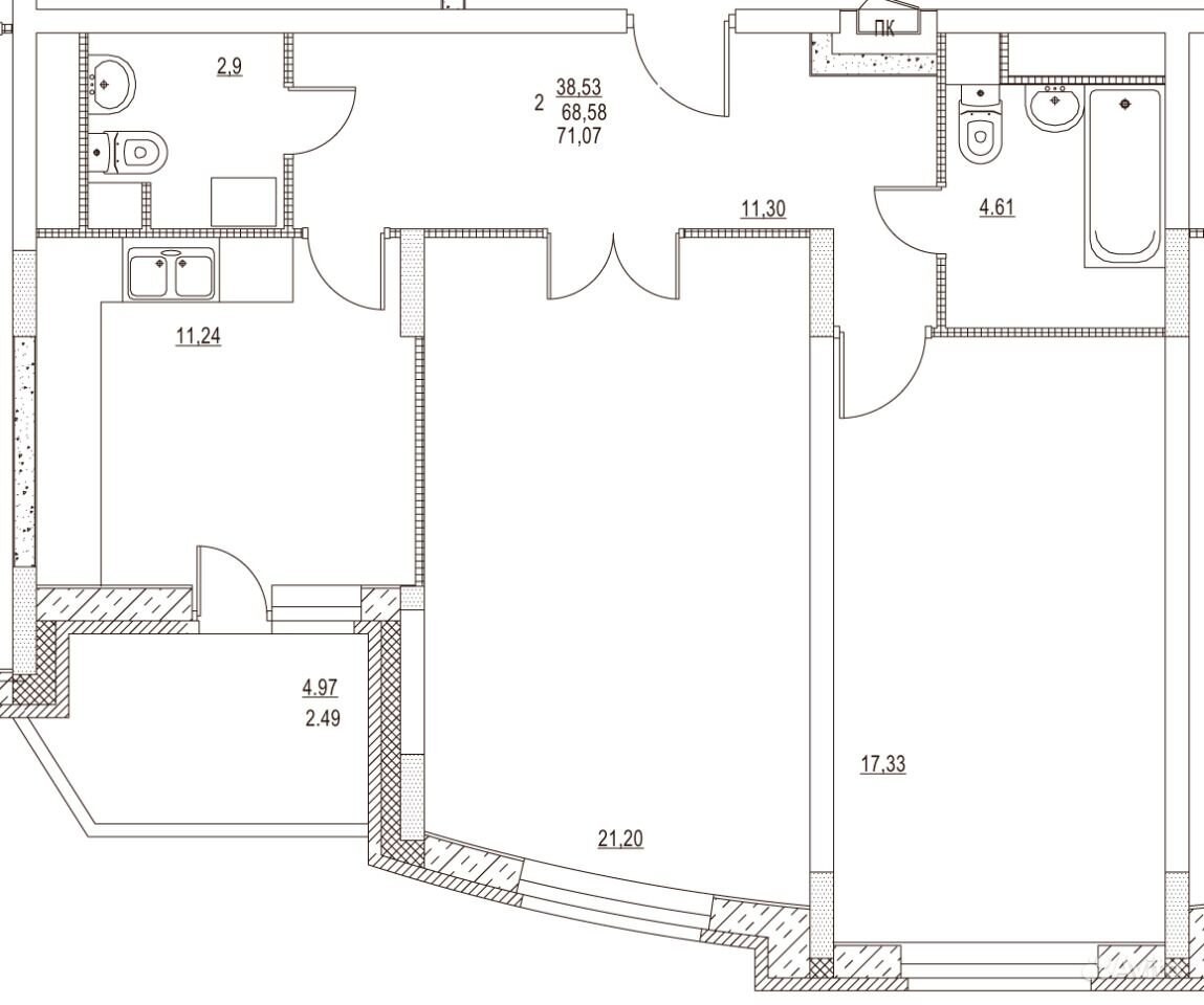 Планировка пик двушка распашонка 69 м2
