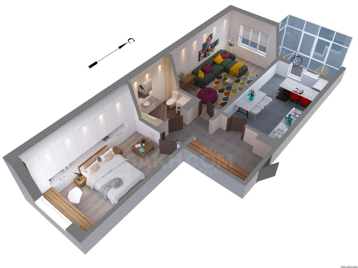 Планировка евротрешка распашонка