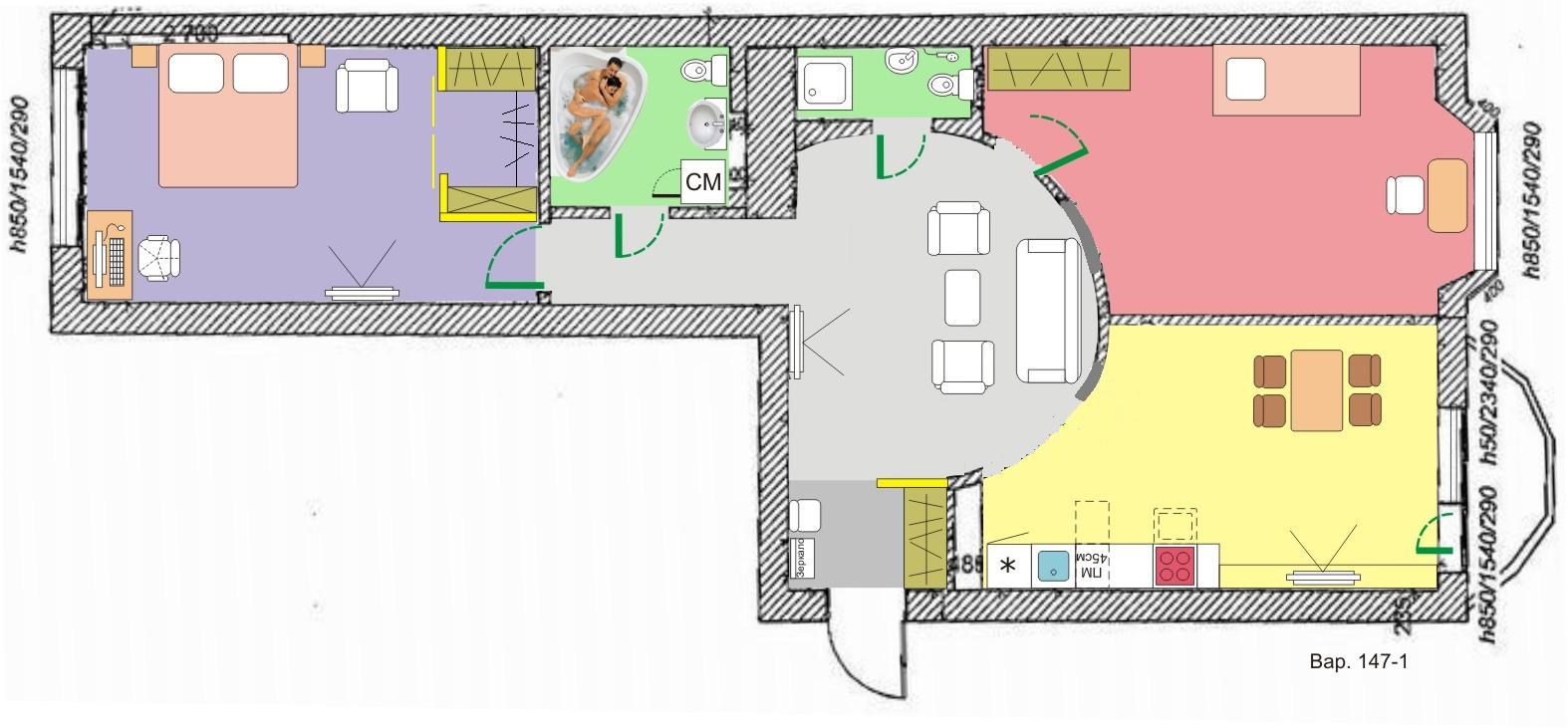 Планировка трешка распашонка 72 метра