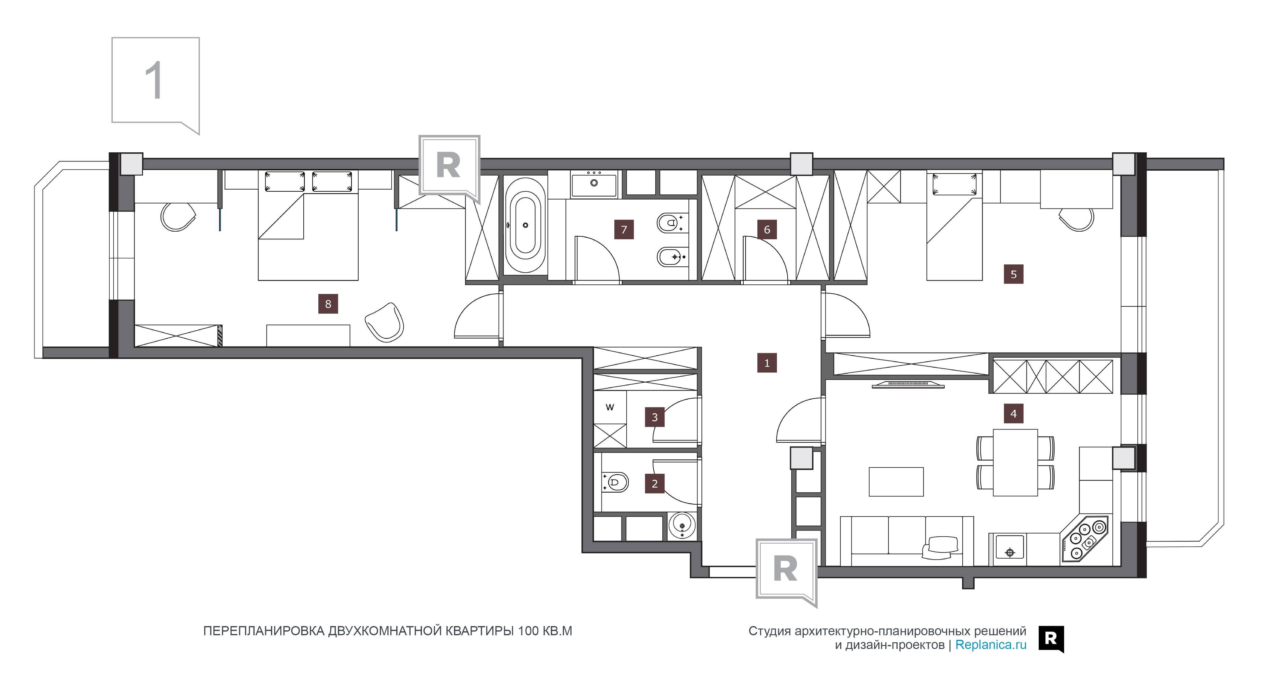 Перепланировка трехкомнатной квартиры 80 кв.м