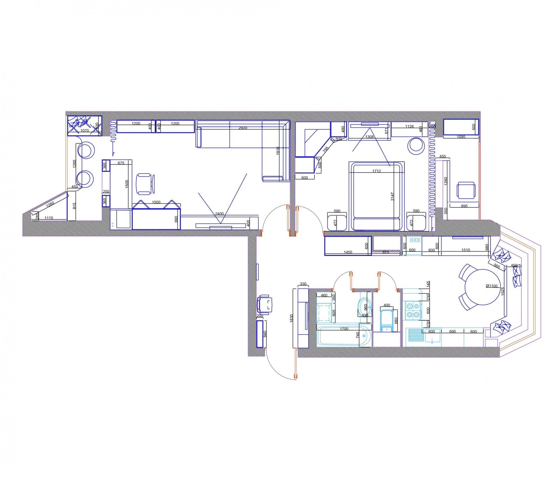 Планировка 2 комнатной квартиры распашонка 56 кв