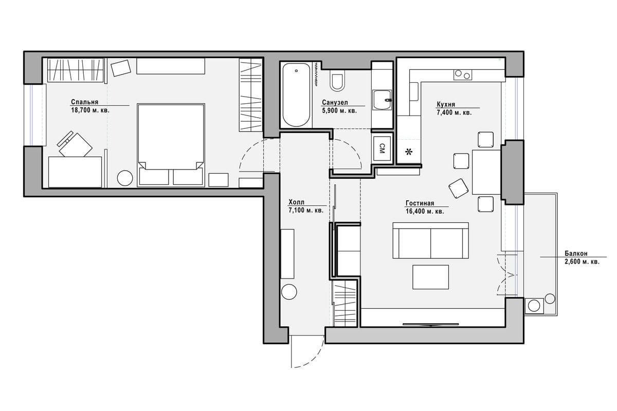 Евродвушка 45 кв м планировка