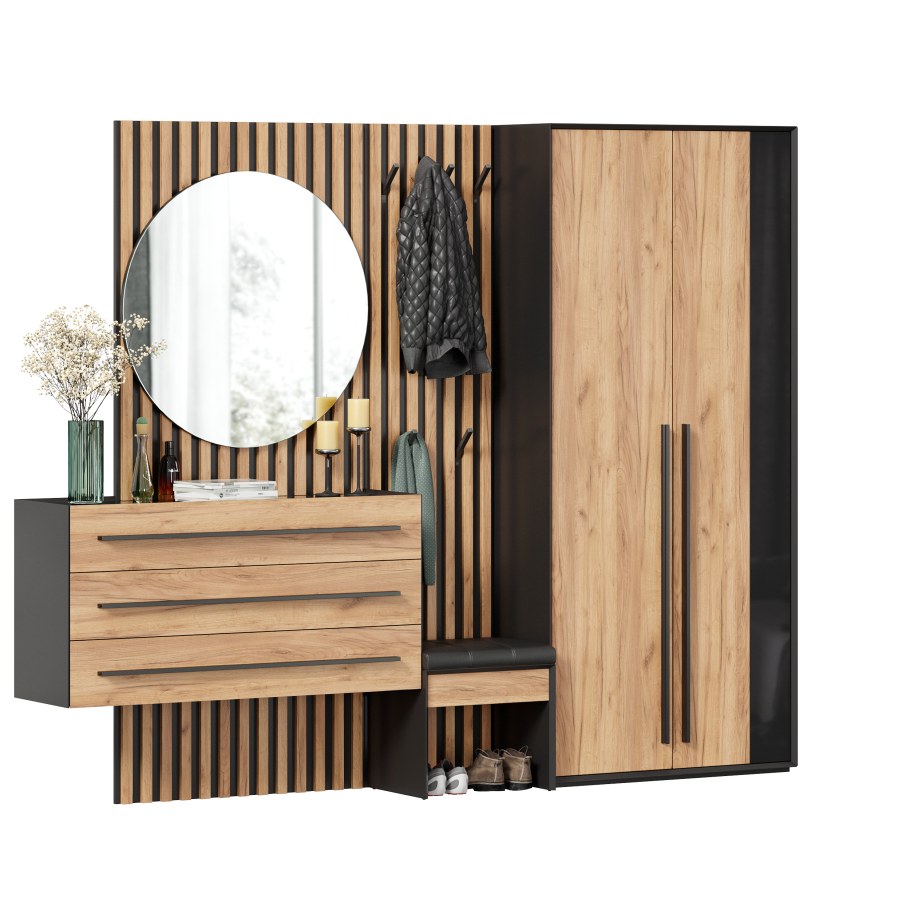Прихожая №10 Неаполь (черный/дуб золотой)