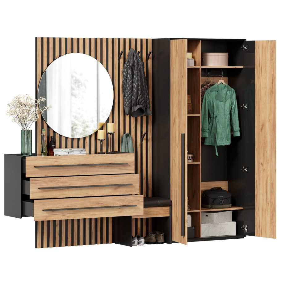 Прихожая №16 Неаполь (черный/дуб золотой)
