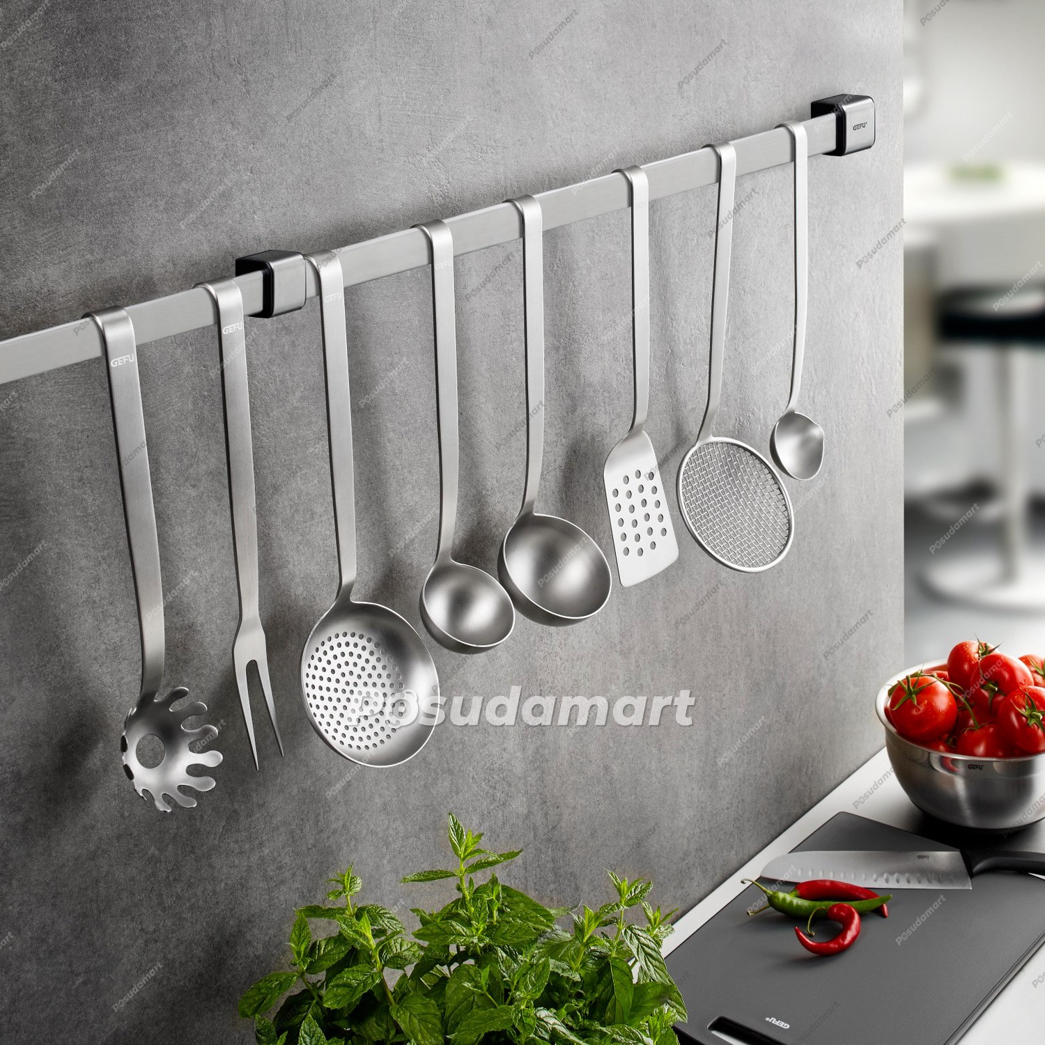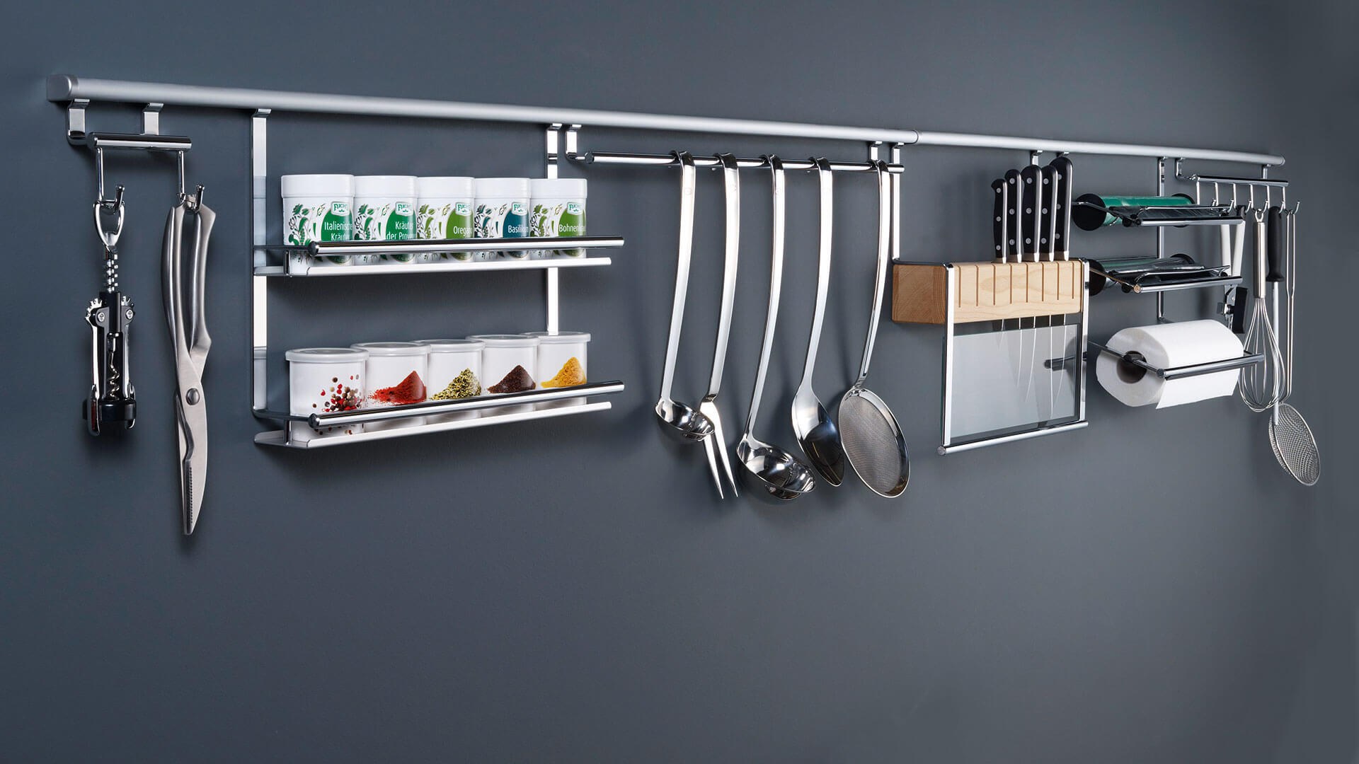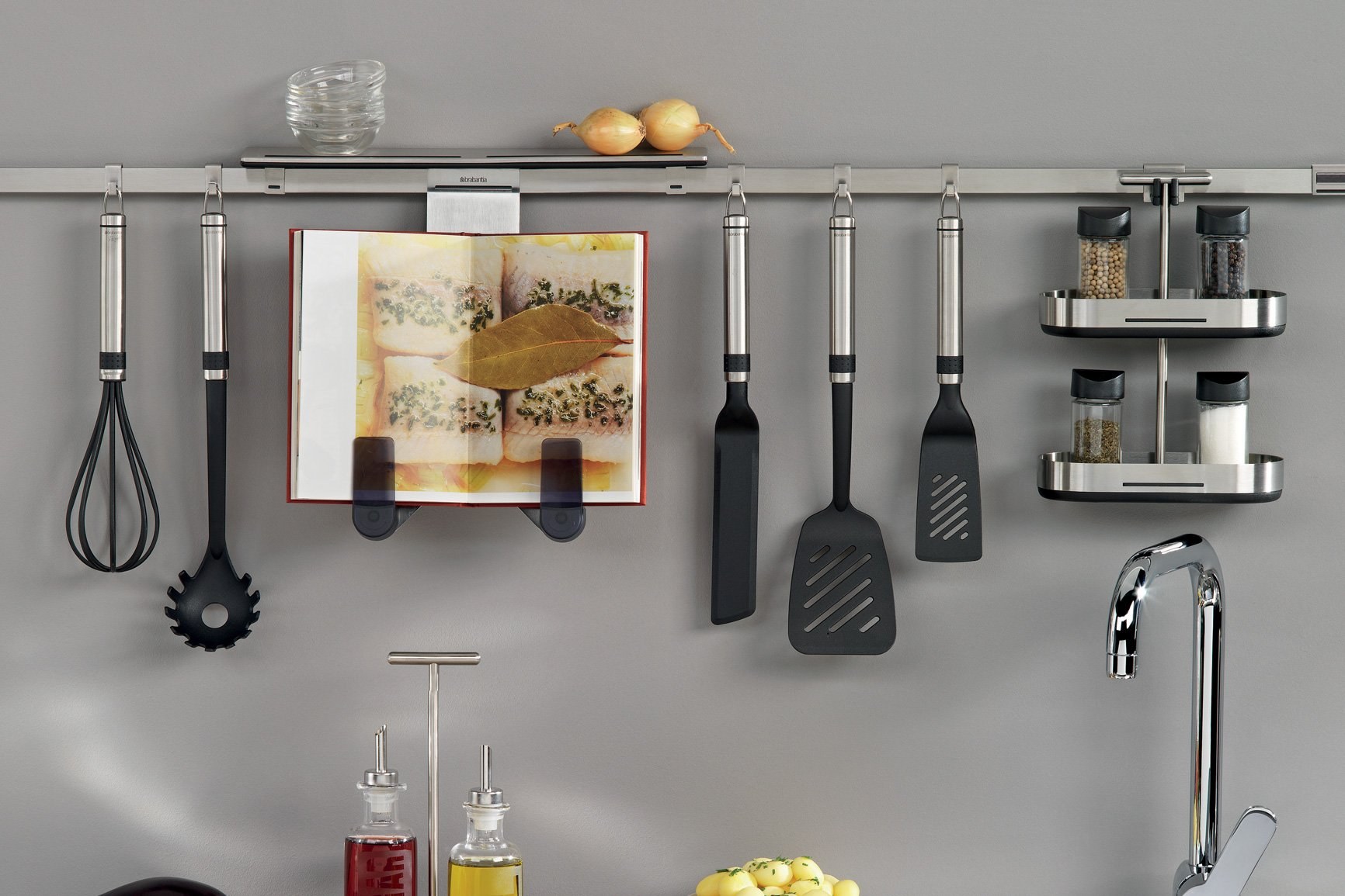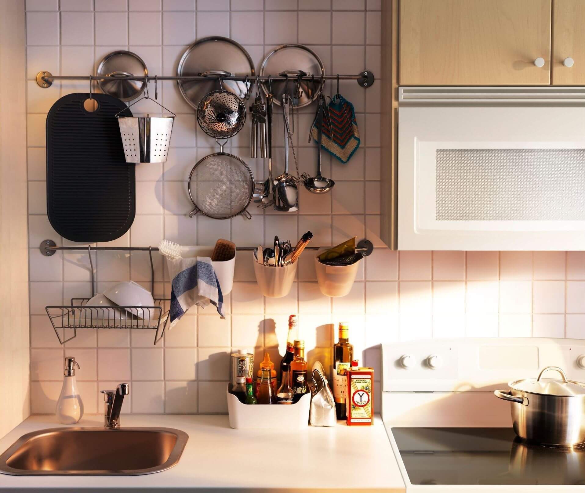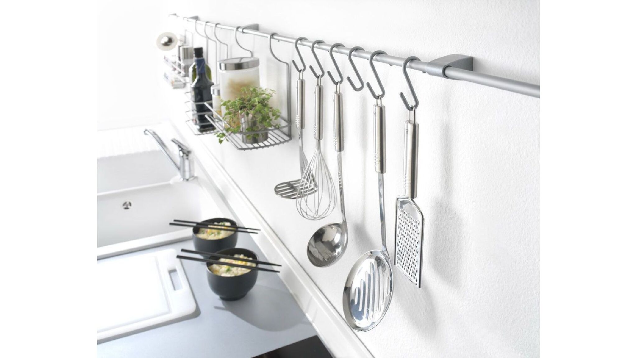 Кухонные принадлежности на рейлинги