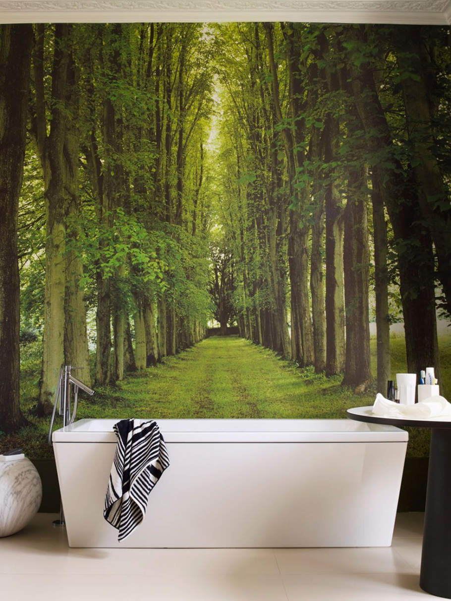 Фотообои в интерьере ванной комнаты