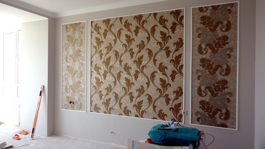 Варианты наклейки обоев в зале комбинирование (67 фото)