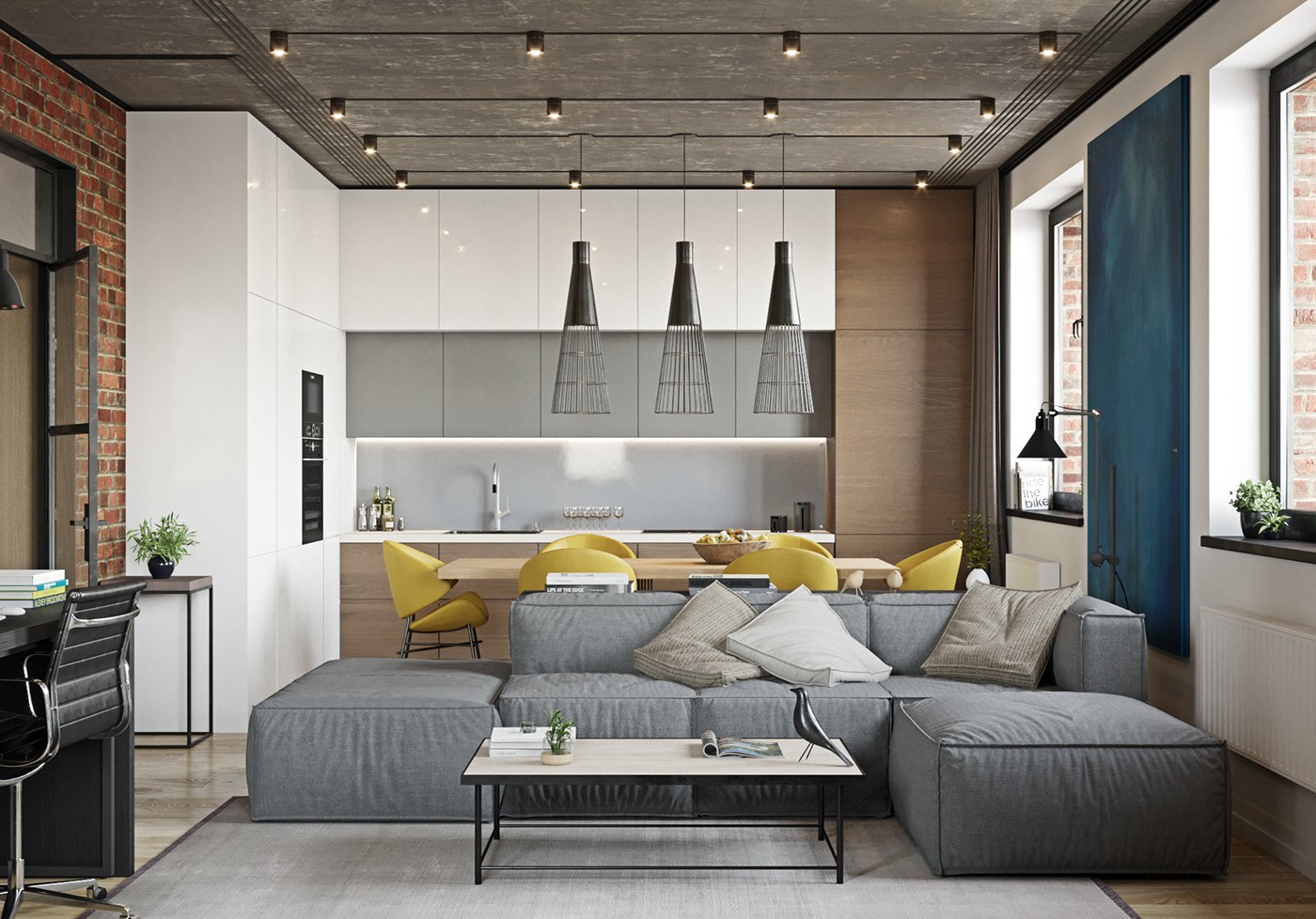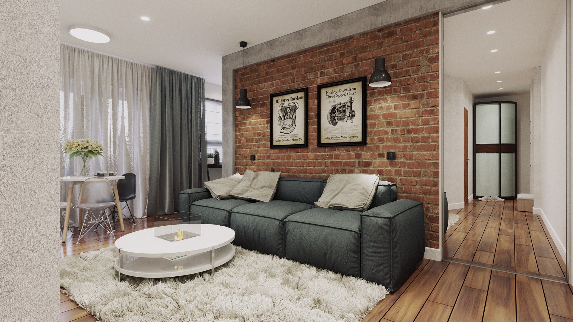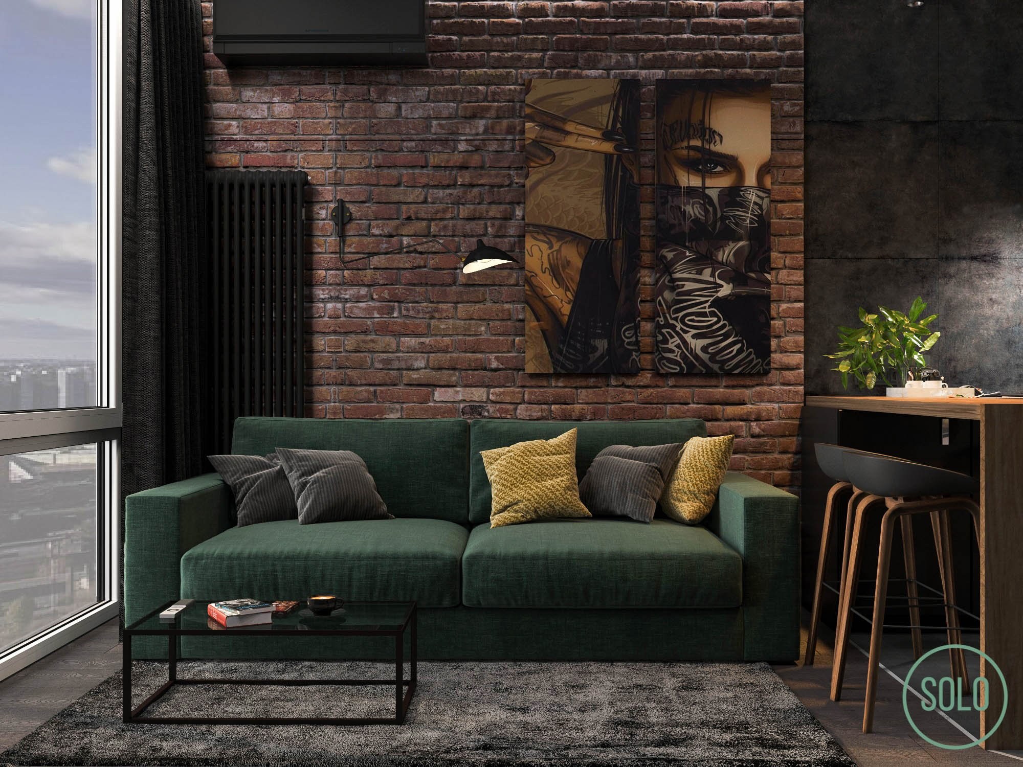 Интерьер лофт Индастриал бирюзовый радиаторы