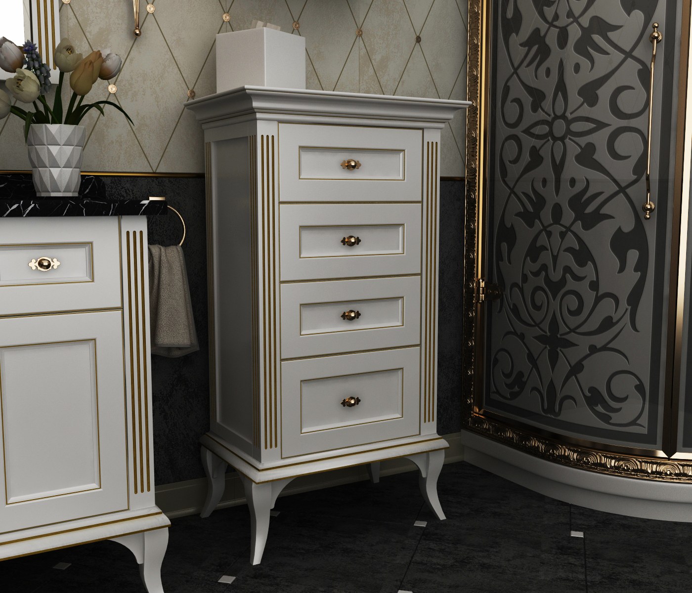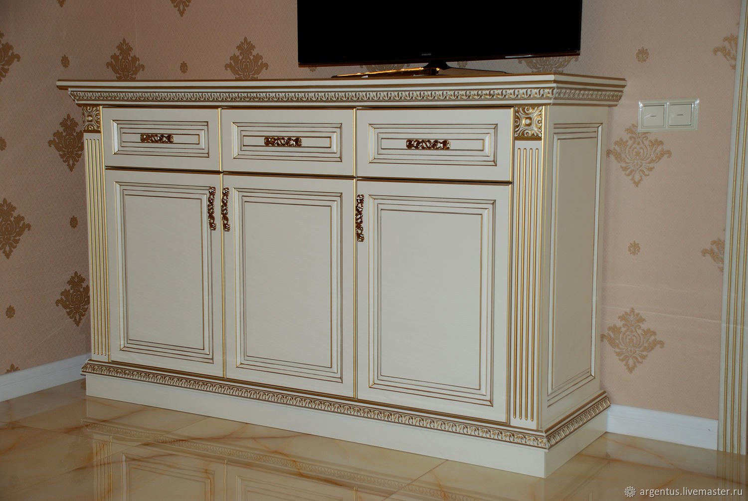 Тумба под ТВ классика белая с патиной золото