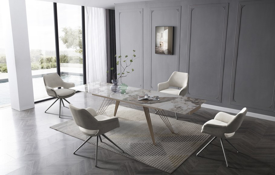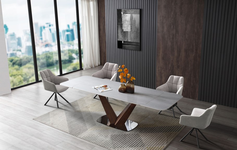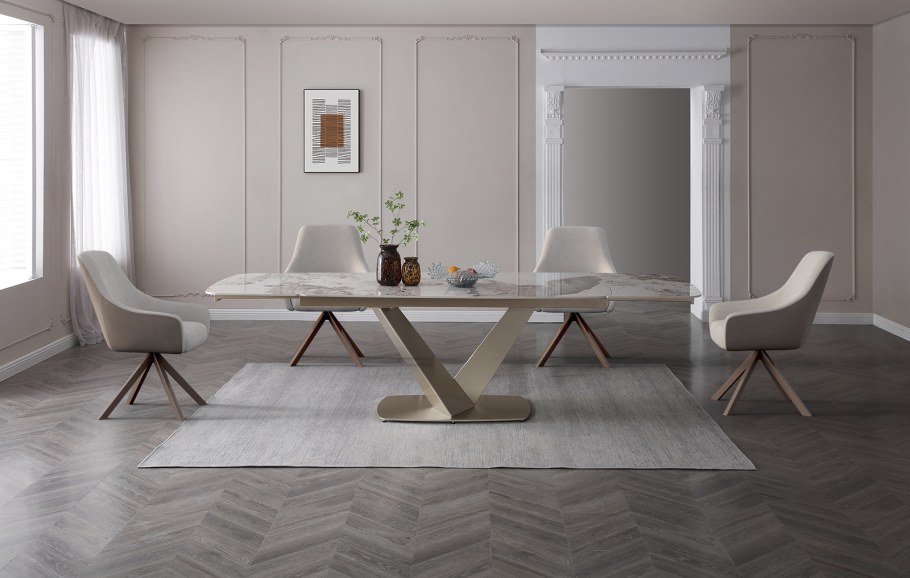 Стол раскладной Ramses 160-230, белый мрамор/хром