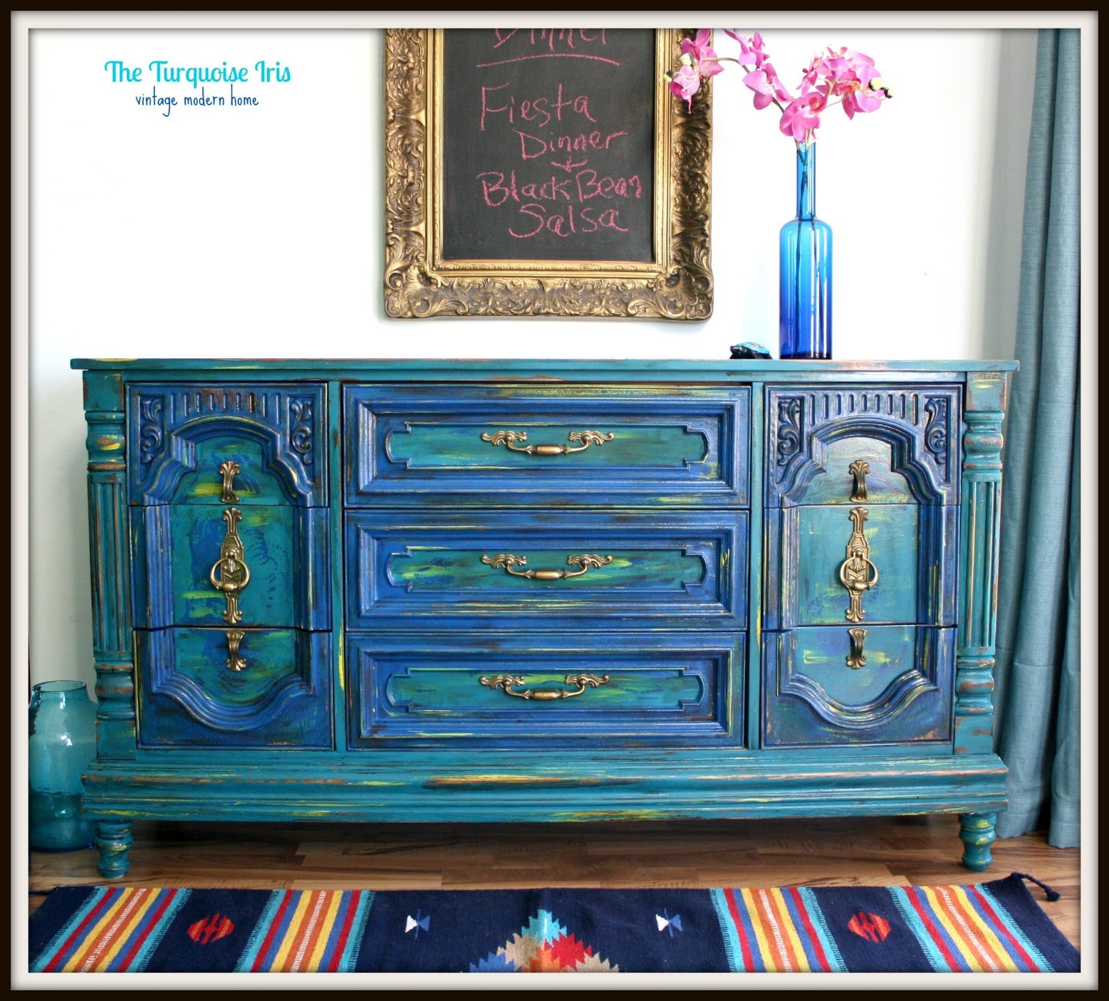 Комод синий состаренный