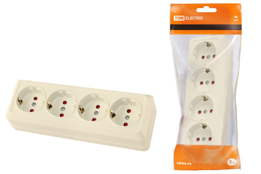 Розетка SMARTBUY SBE-03w-16-s4-z белая Юпитер (4-местная, с заземлением, 16а) (1,60)