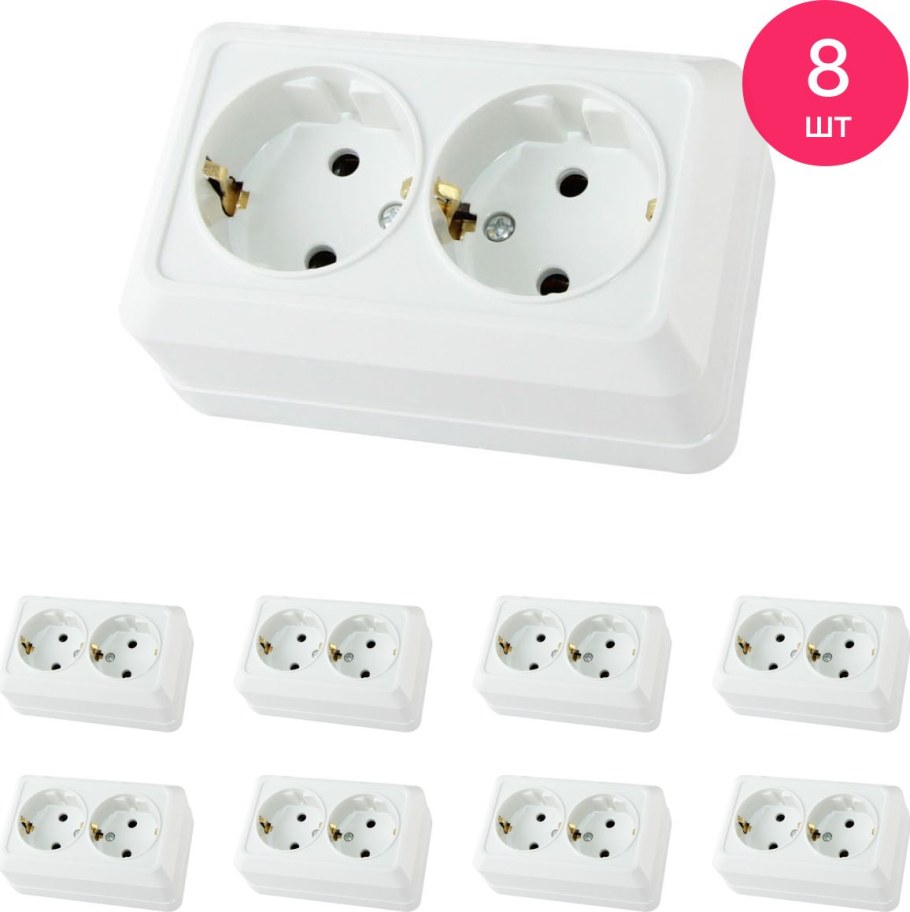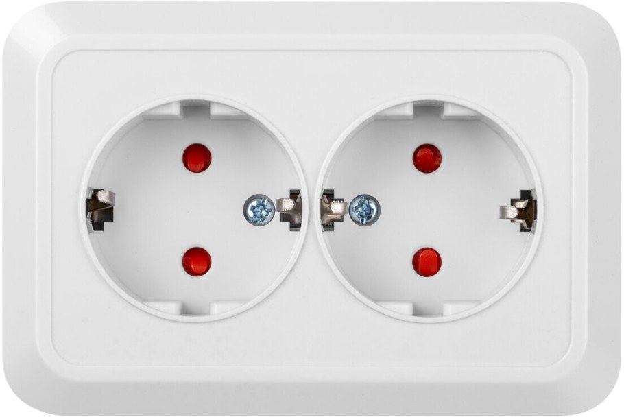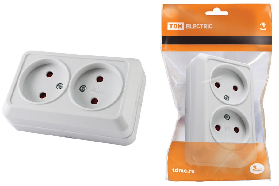 Розетка двойная 2п открытой установки ip20 10а, белая "Ладога" TDM