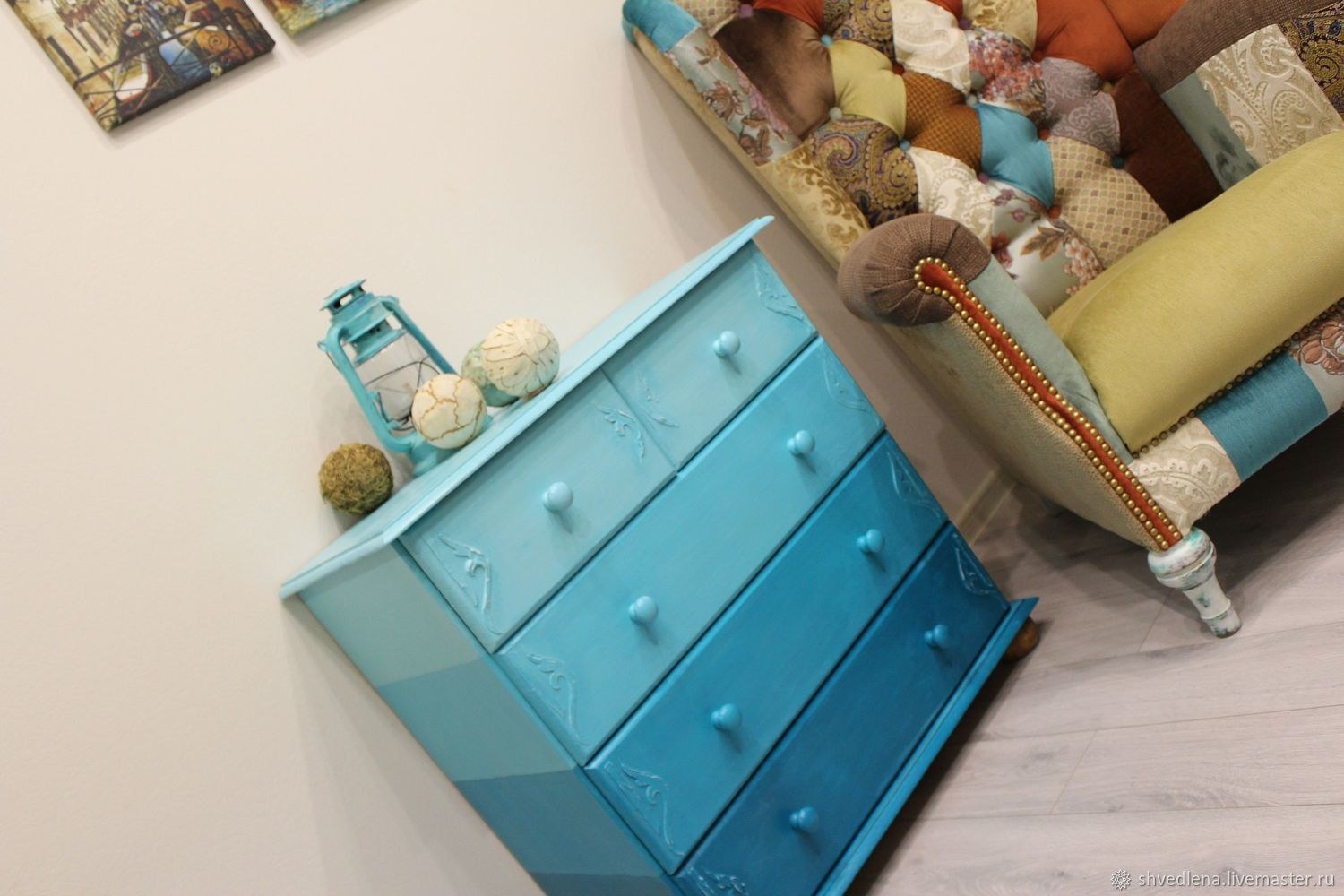 Комод с бирюзовыми вставками