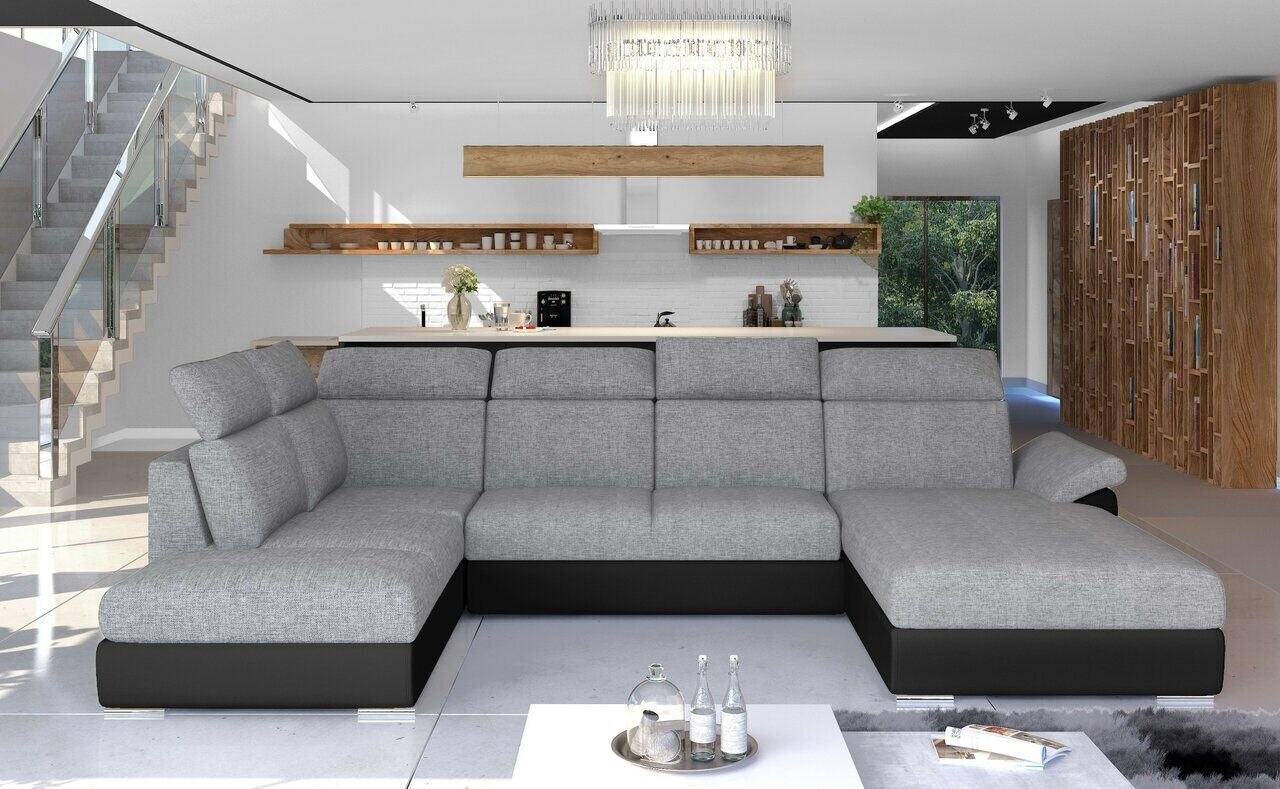 Угловой диван Рона с оттоманкой (Lugano 01+nice Grey/Орегон 16)