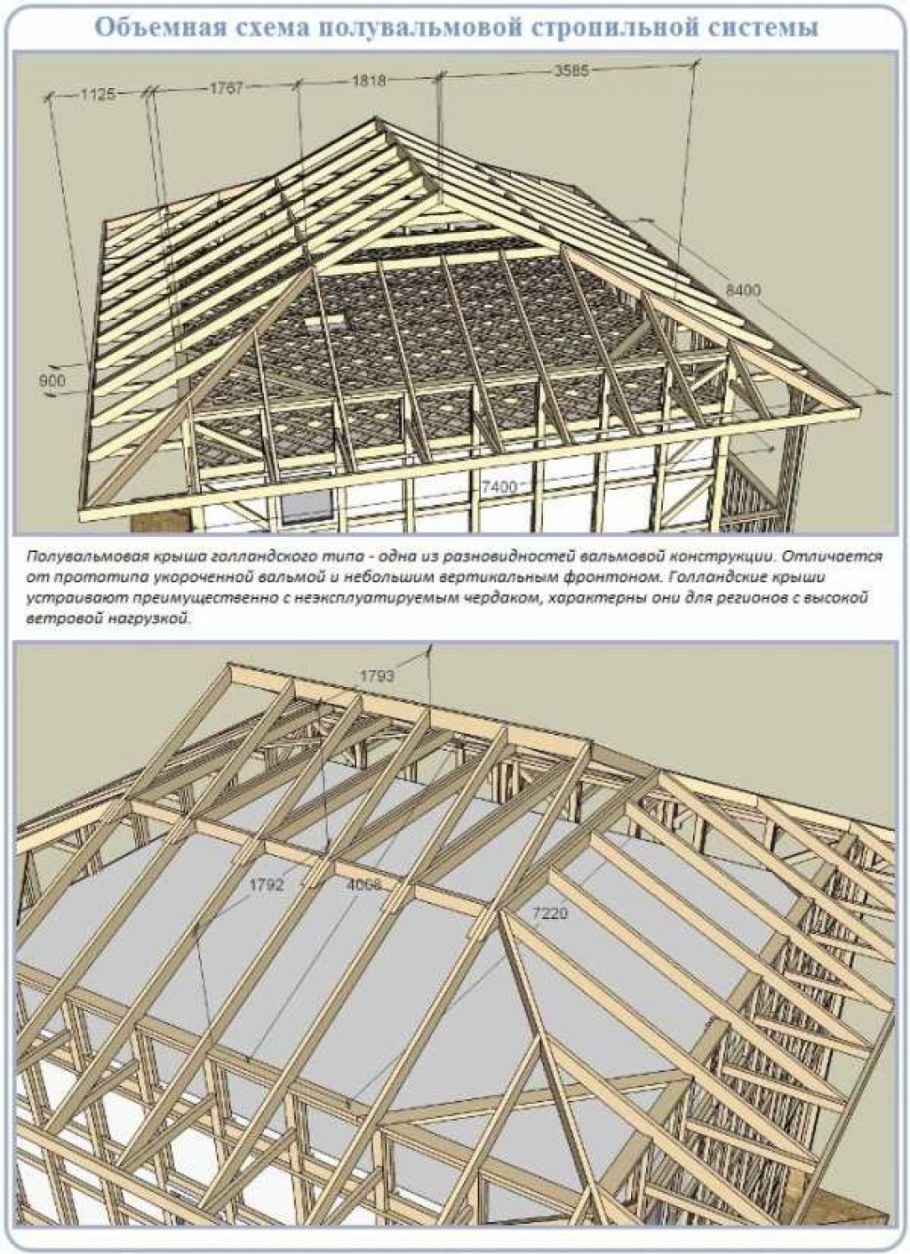 Стропильная система полувальмовой кровли