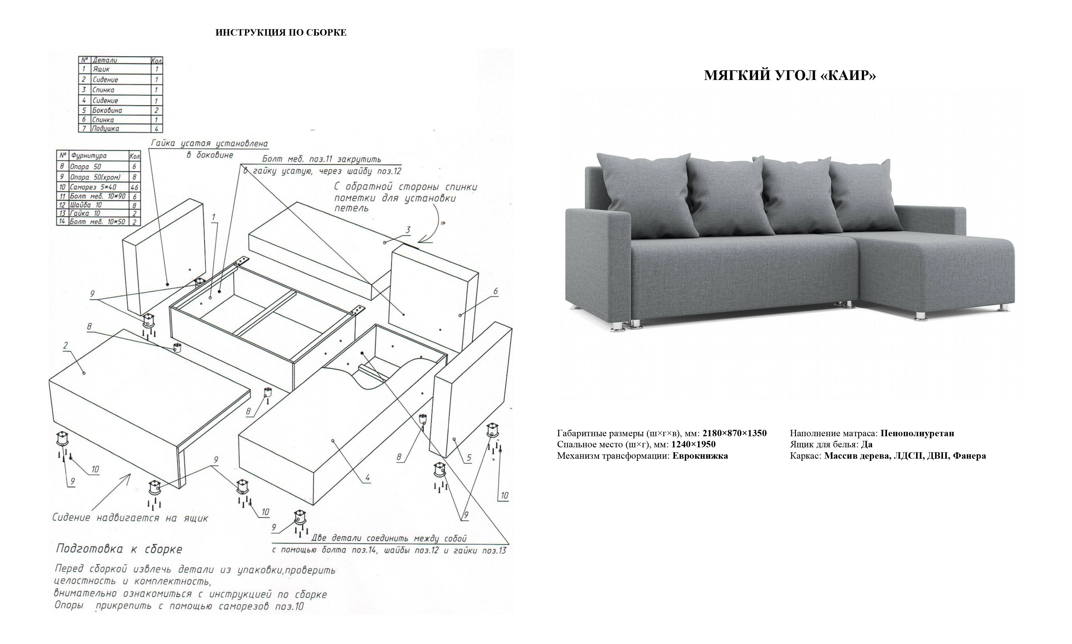 Диван-кровать угловой Юджин серого цвета артикул: IMR-1115930