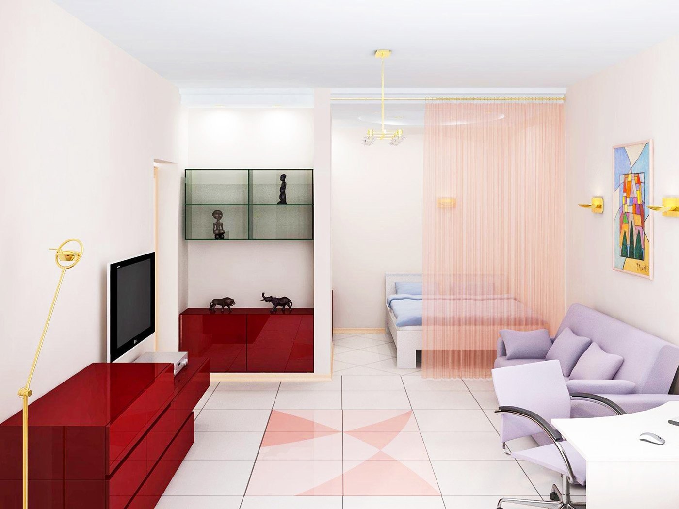 Интерьер комнаты в однокомнатной квартире