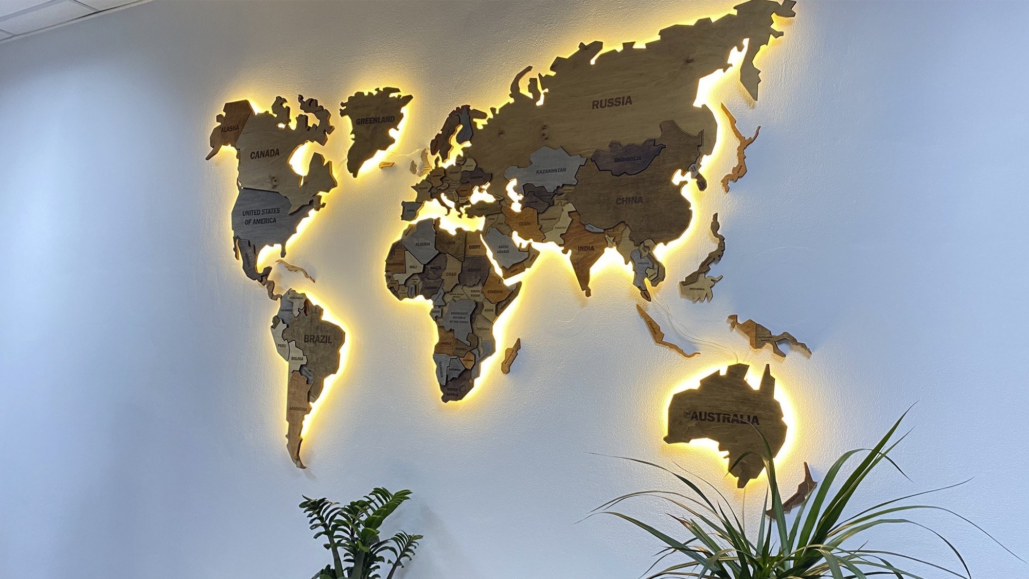 Интерьерные карты мира с подсветкой