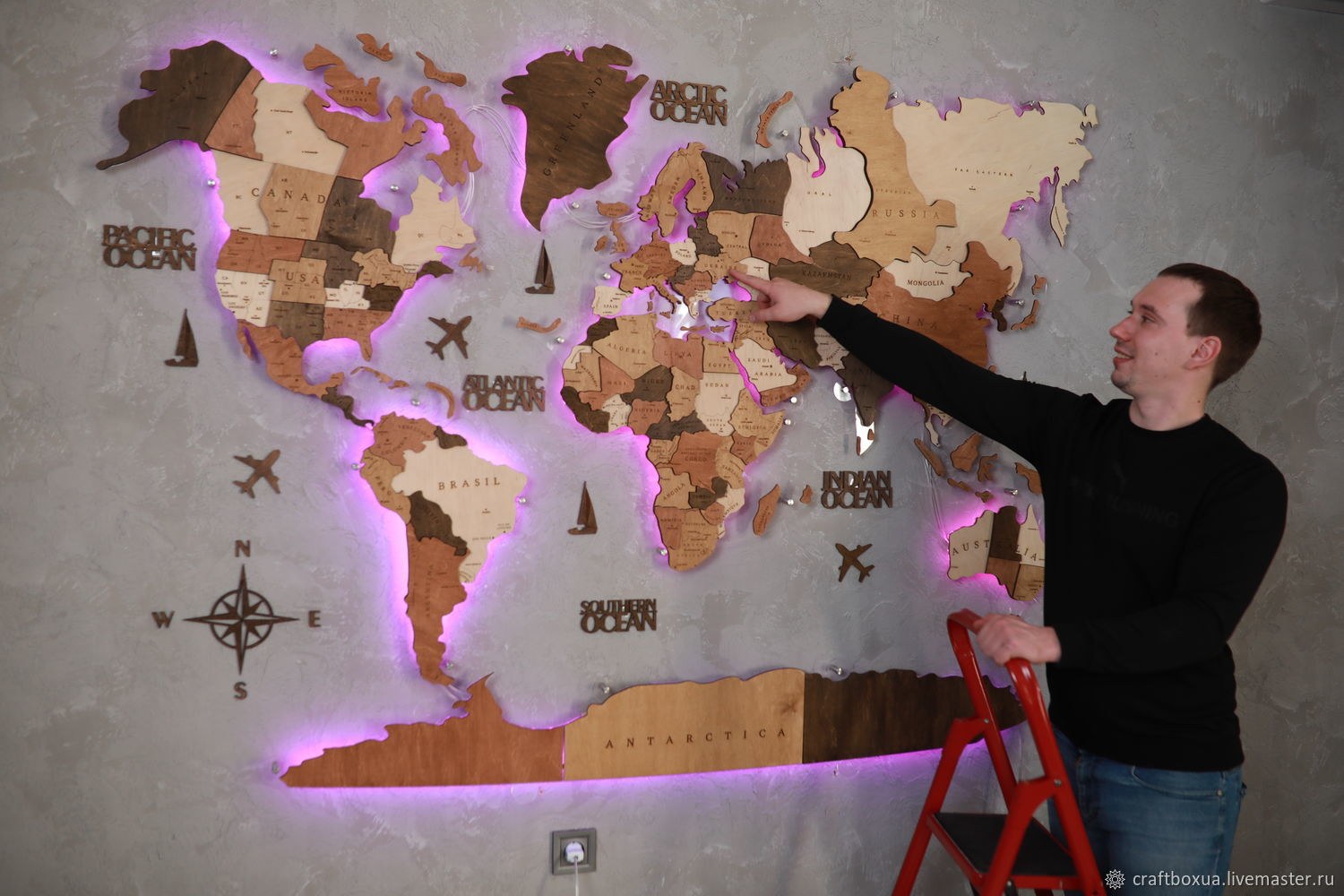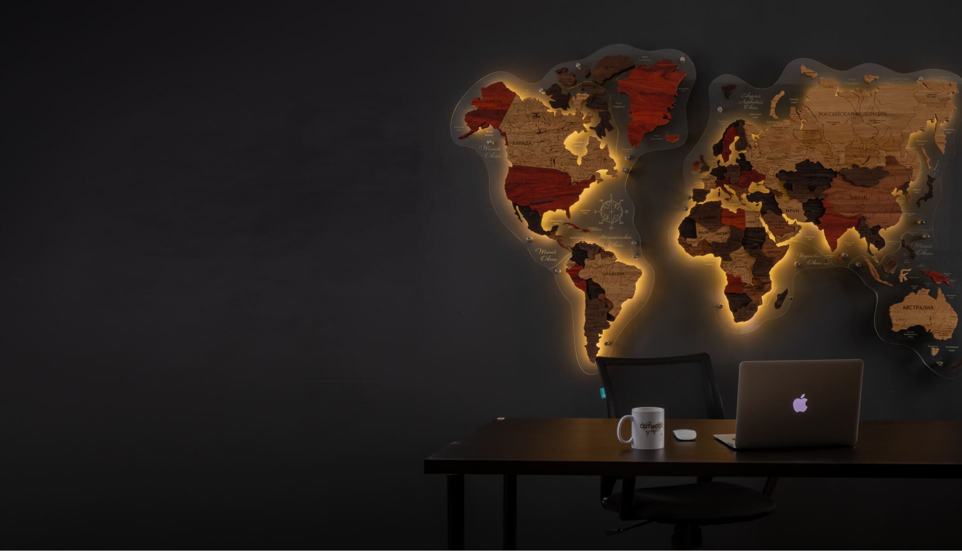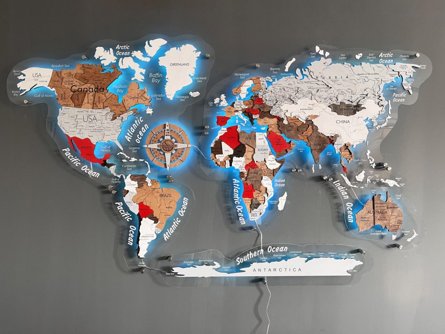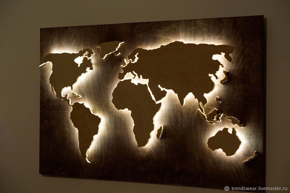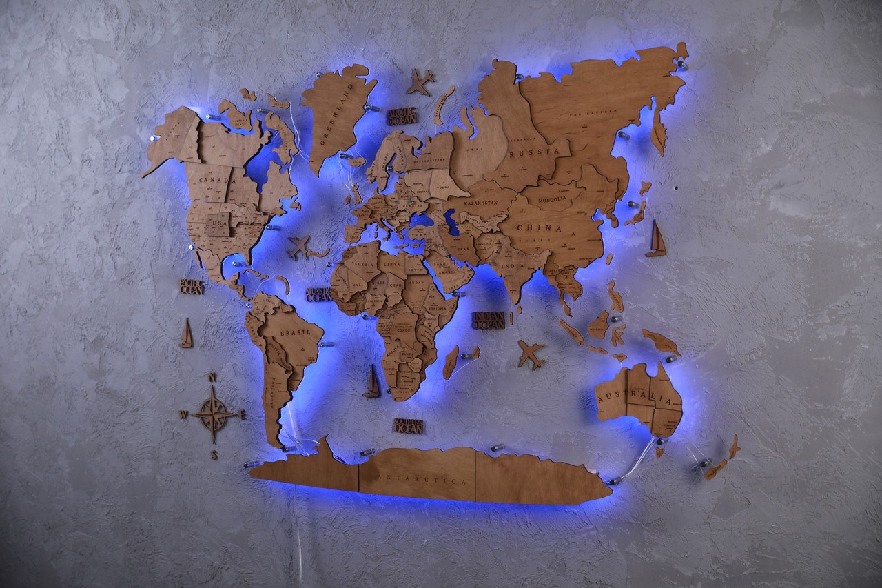 Деревянная карта мира с подсветкой