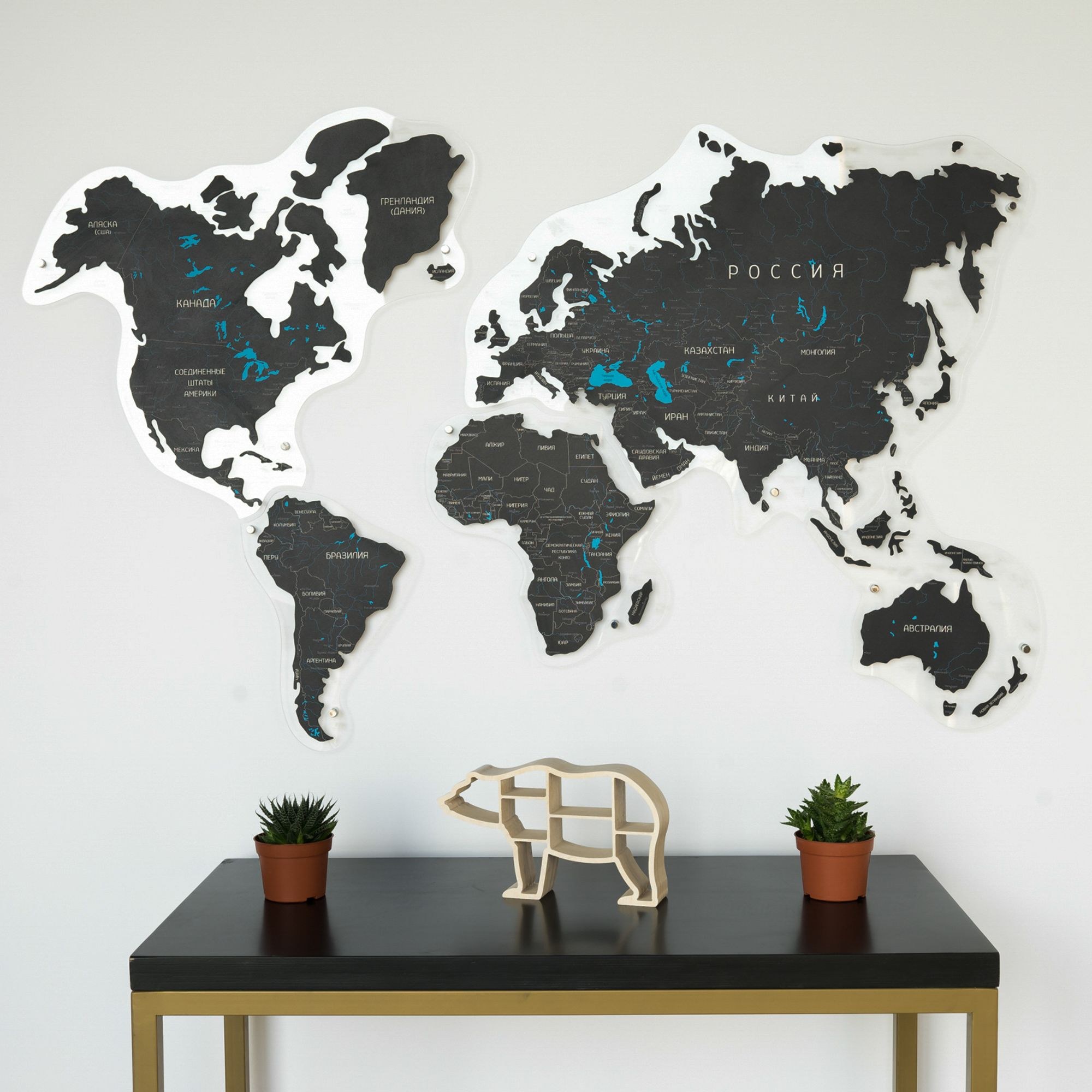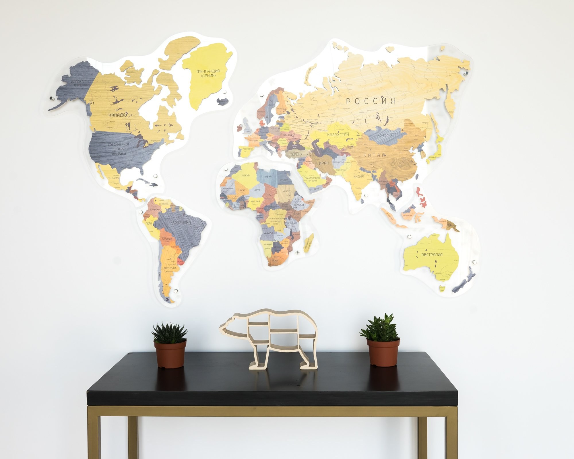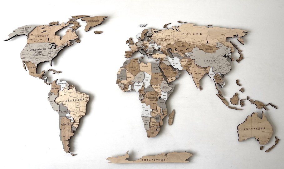 Континенты из дерева на стену