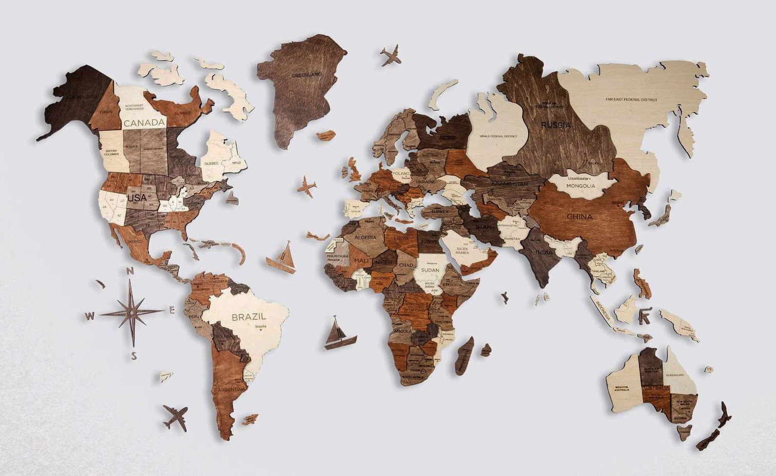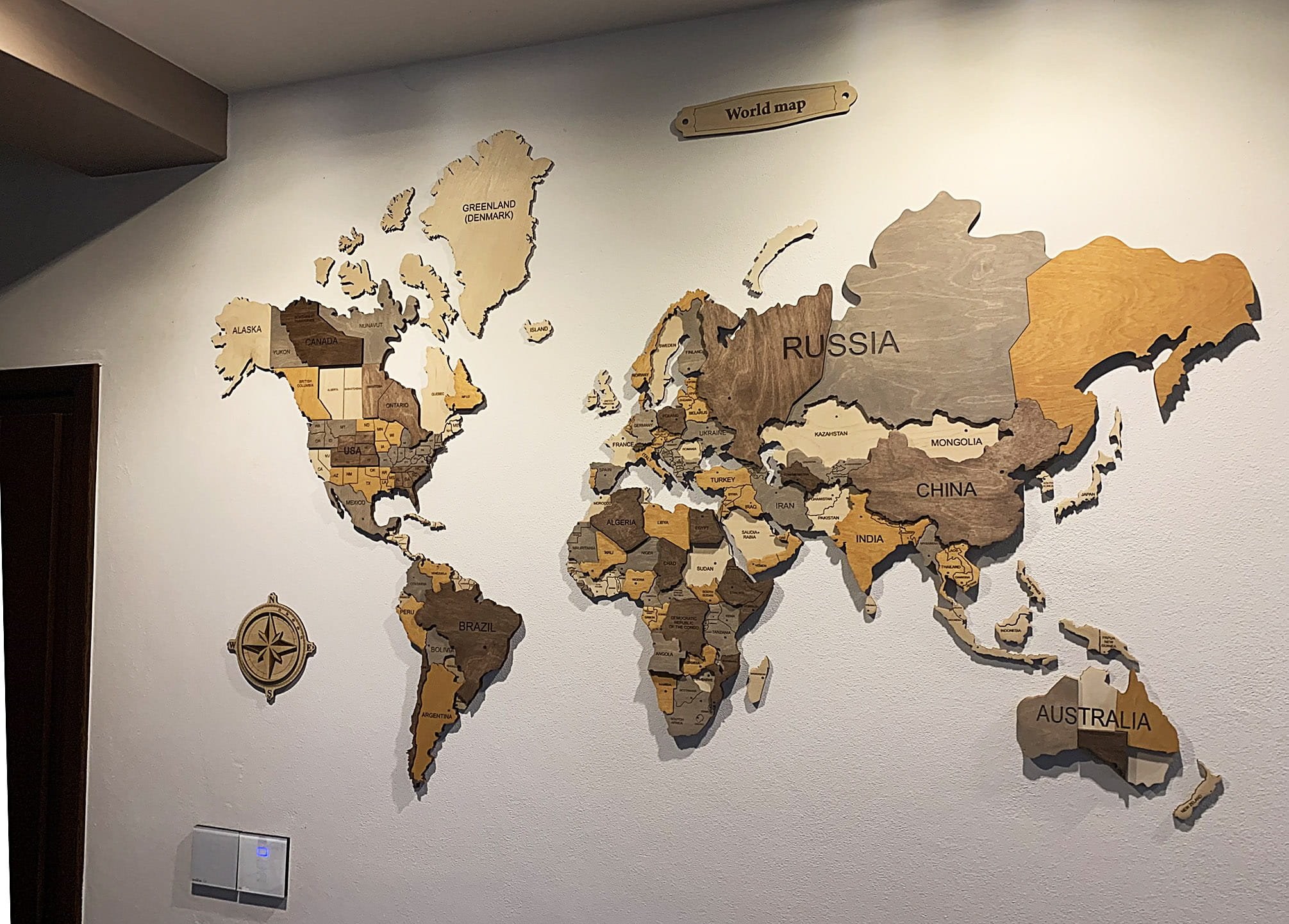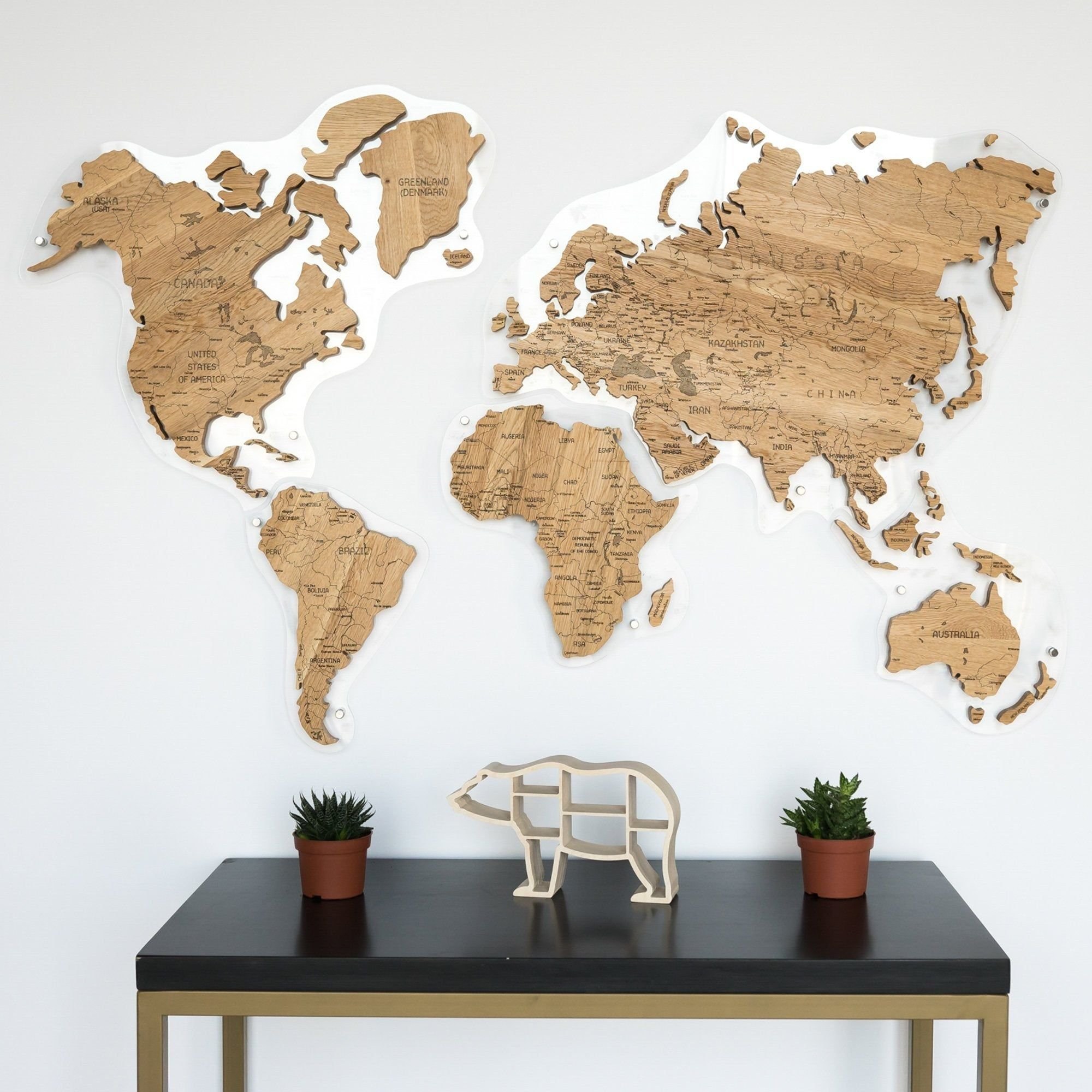 Континенты из дерева на стену