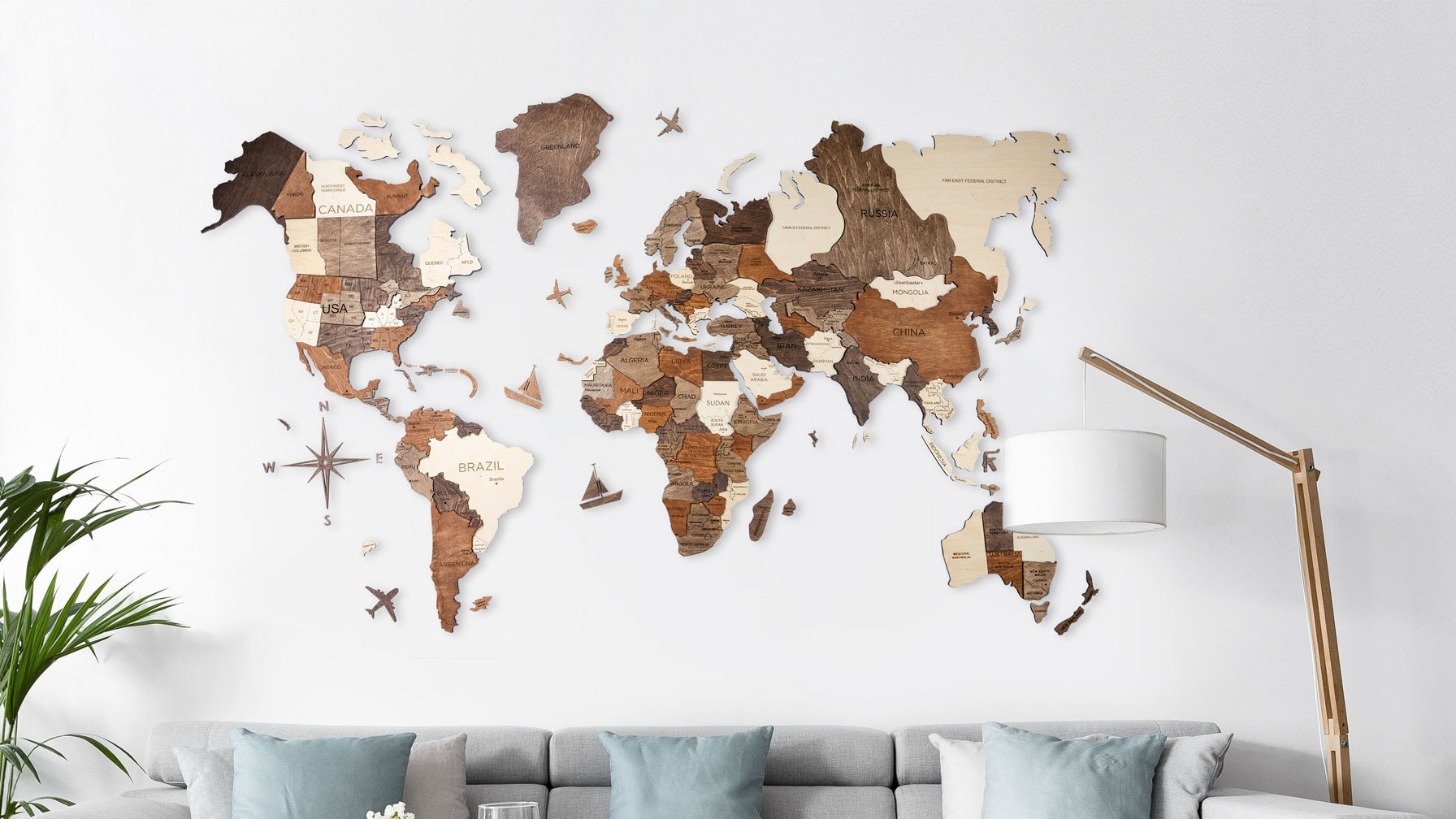 Деревянные материки на стену