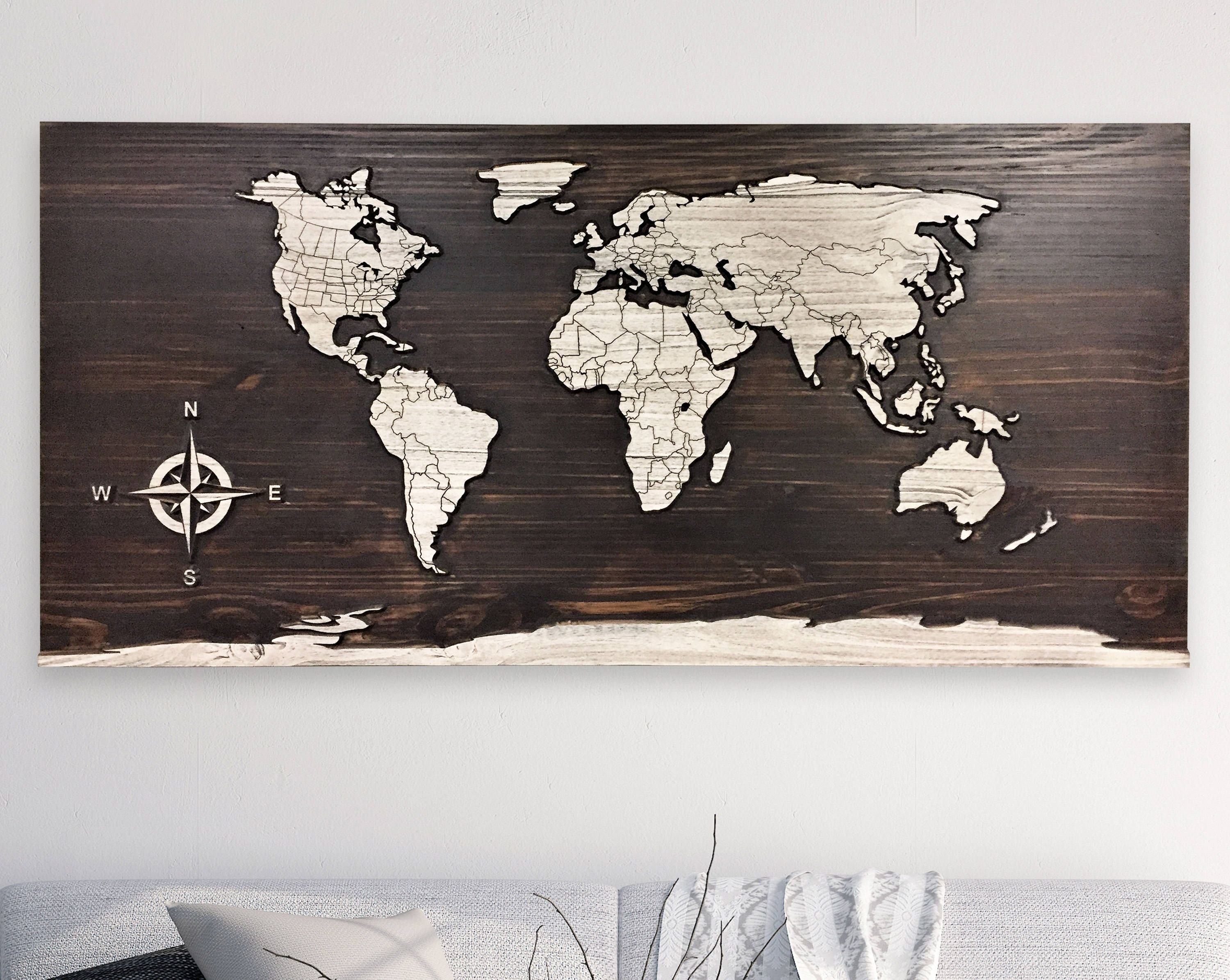 Деревянная карта мира на стену