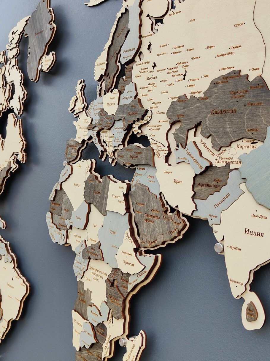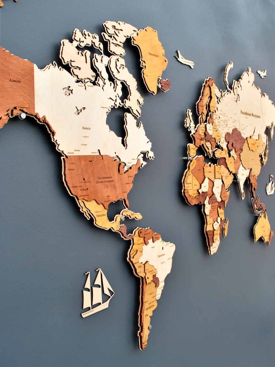 Карты мира на стену из дерева многоуровневая
