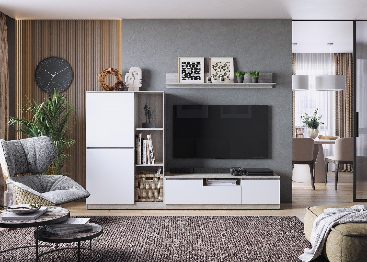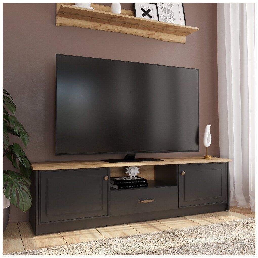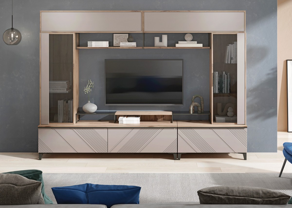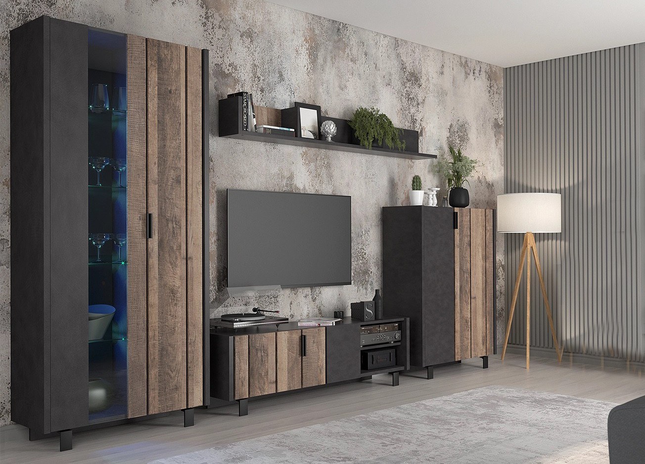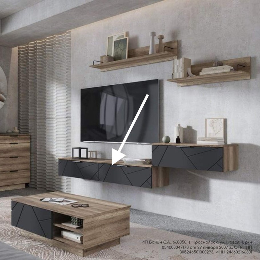 Стенка для гостиной Перфетто №1 черный графит / дуб Натюрель