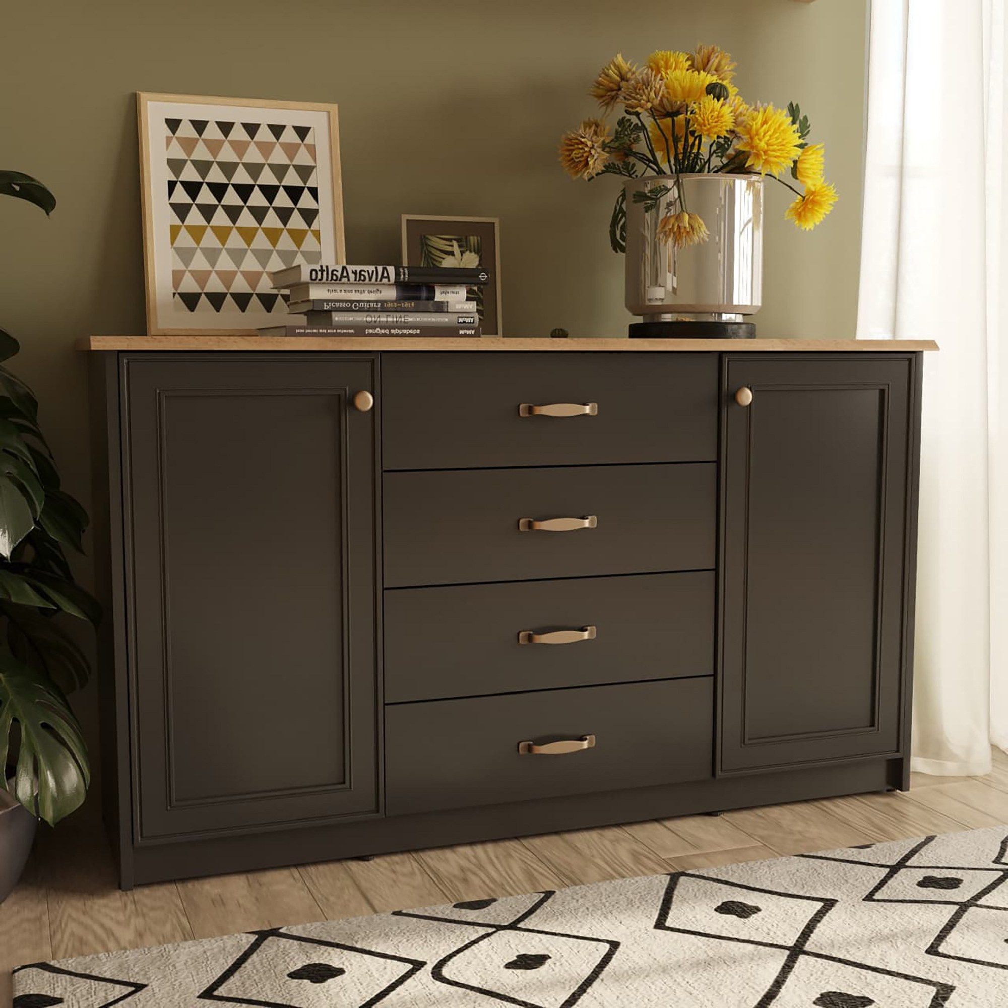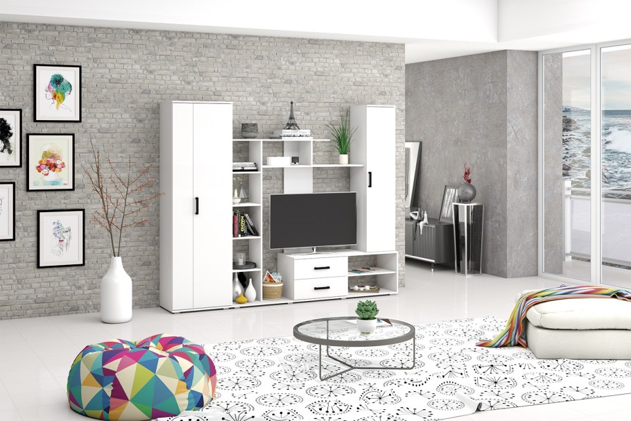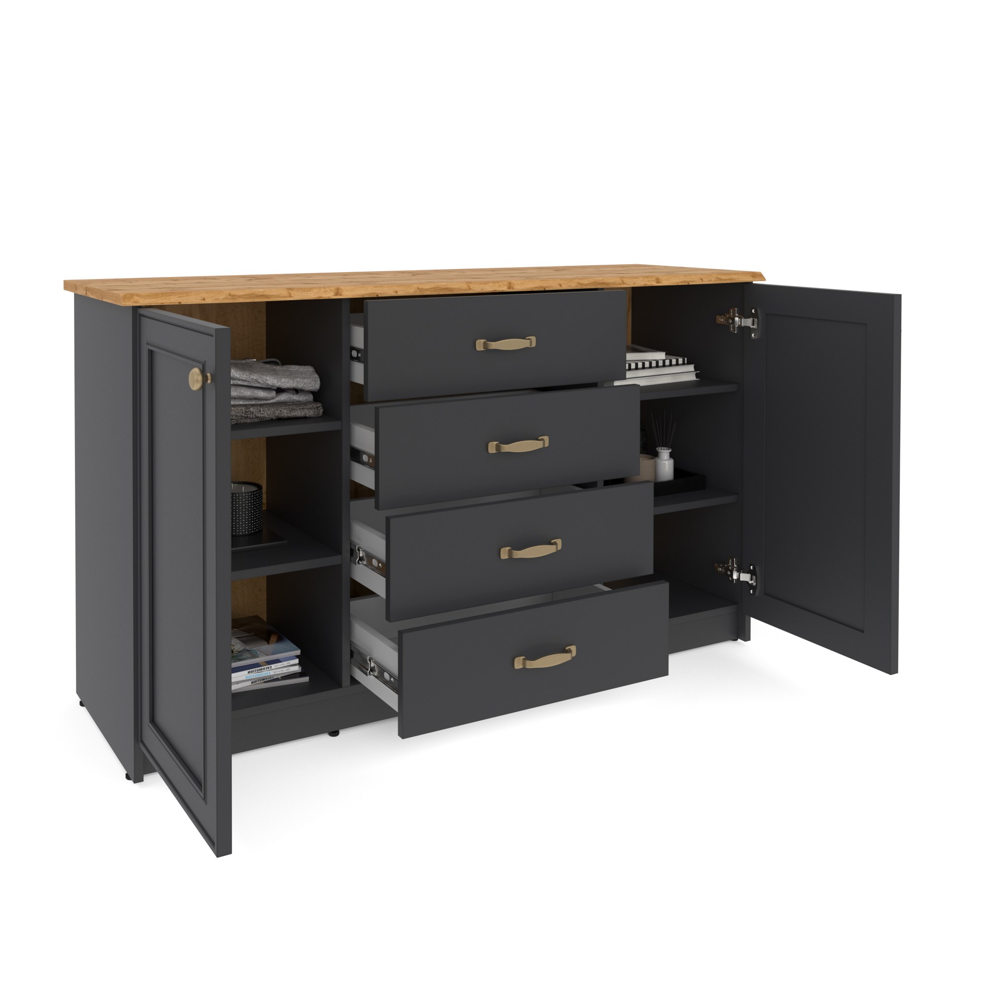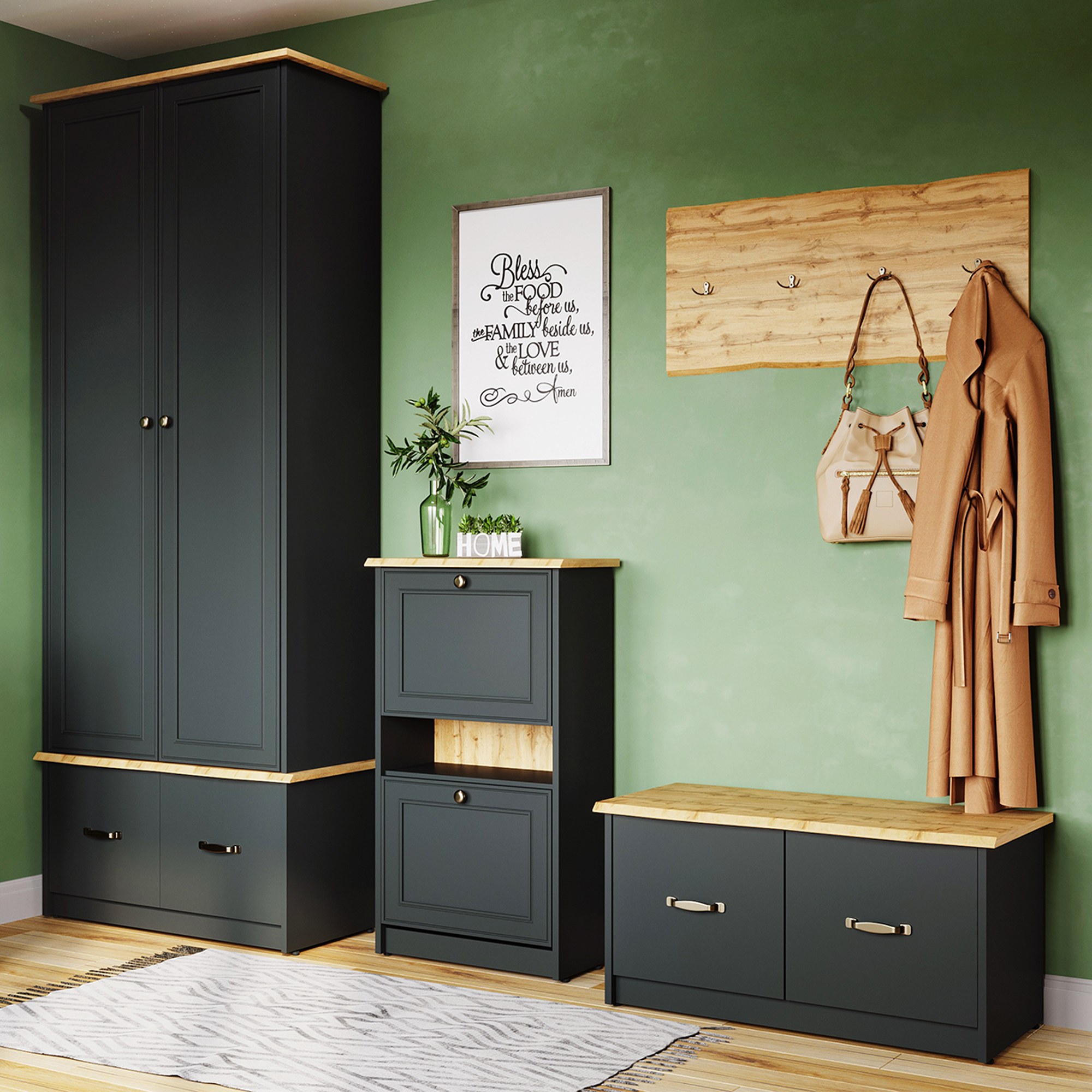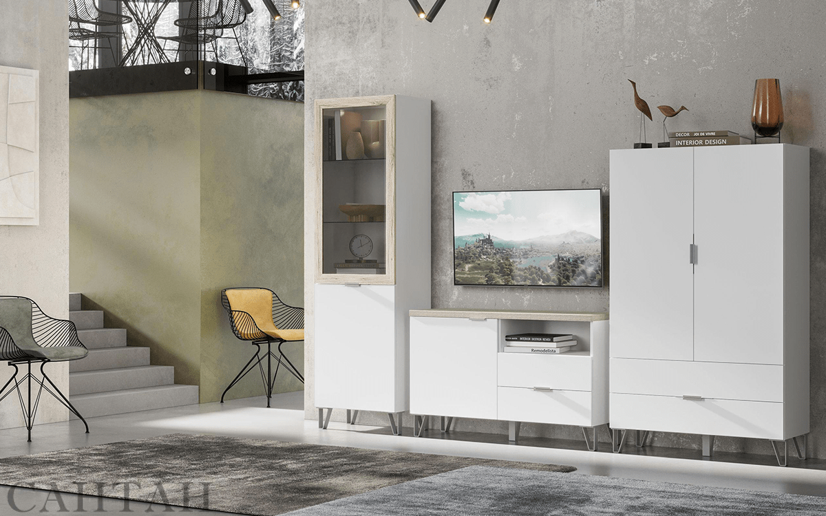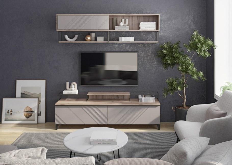 Стенка для гостиной Перфетто №1 черный графит / дуб Натюрель