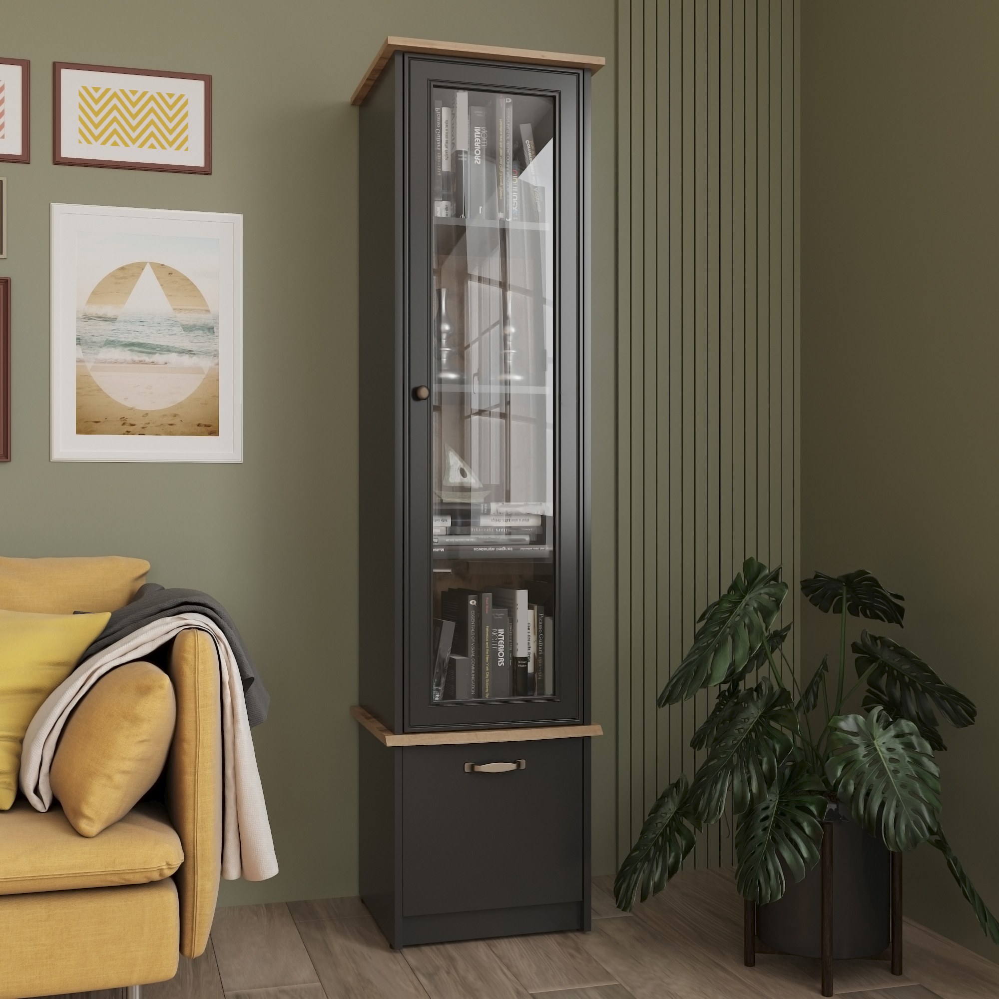 Шкаф-витрина Перфетто графит / дуб Натюрель