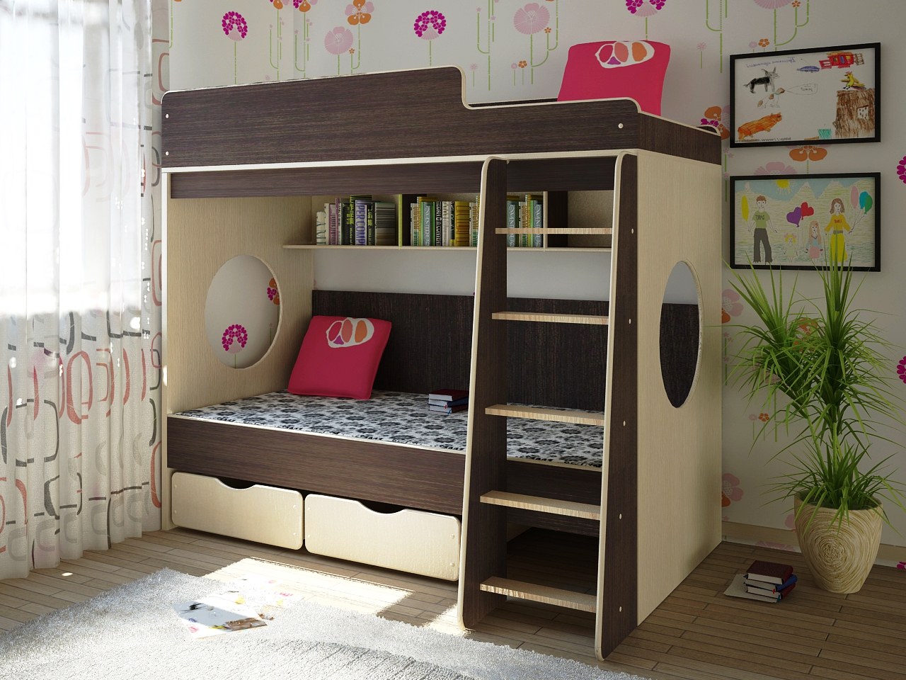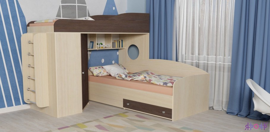 Кровать 2-х ярусная 800х1900 с ящиками, Млечный дуб
