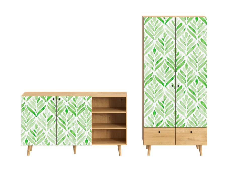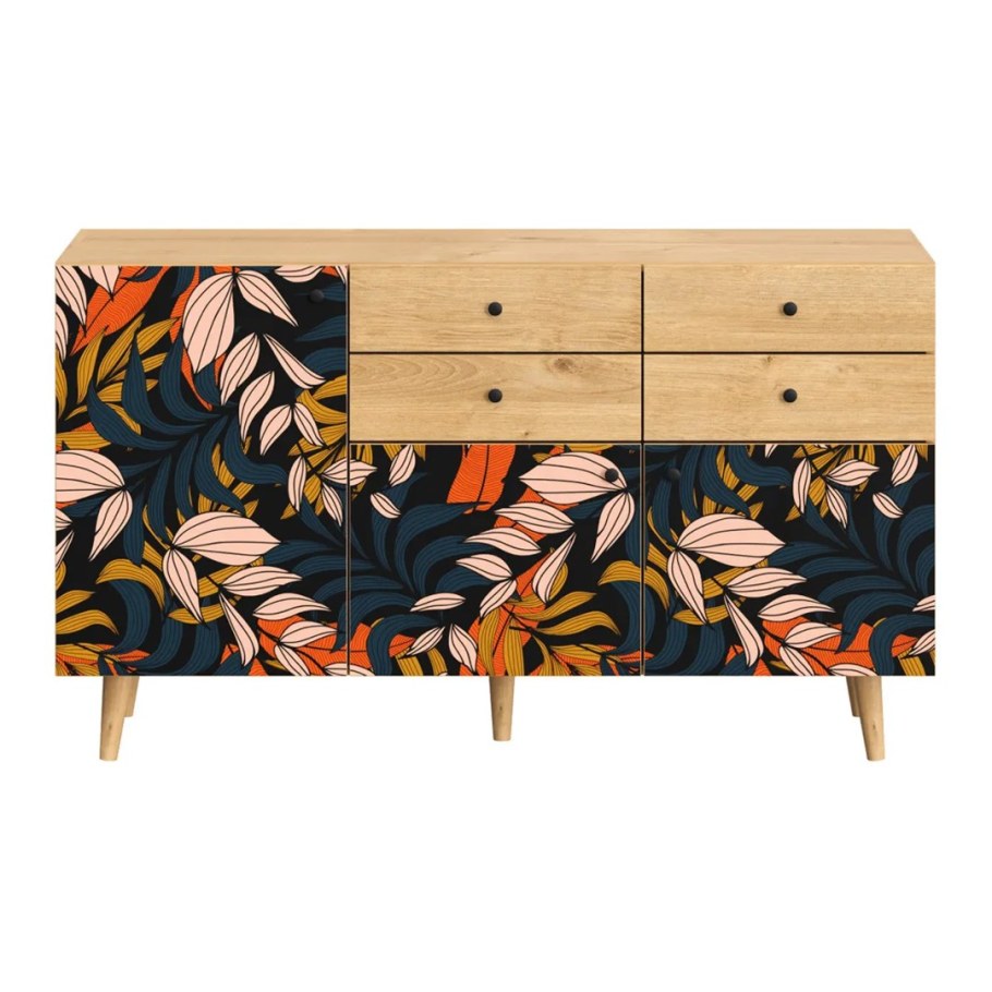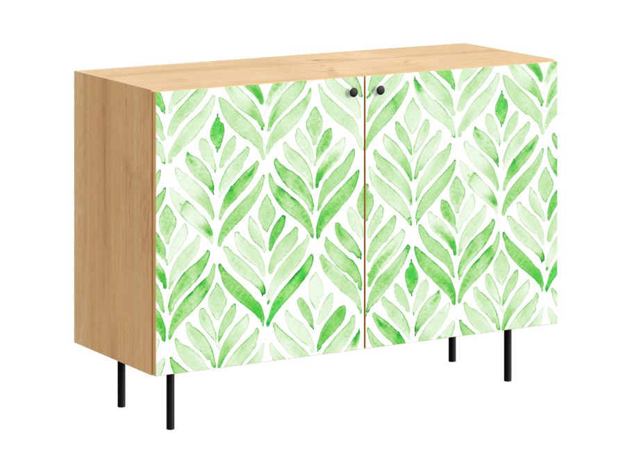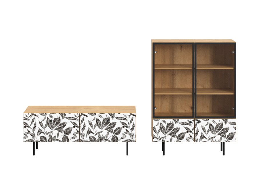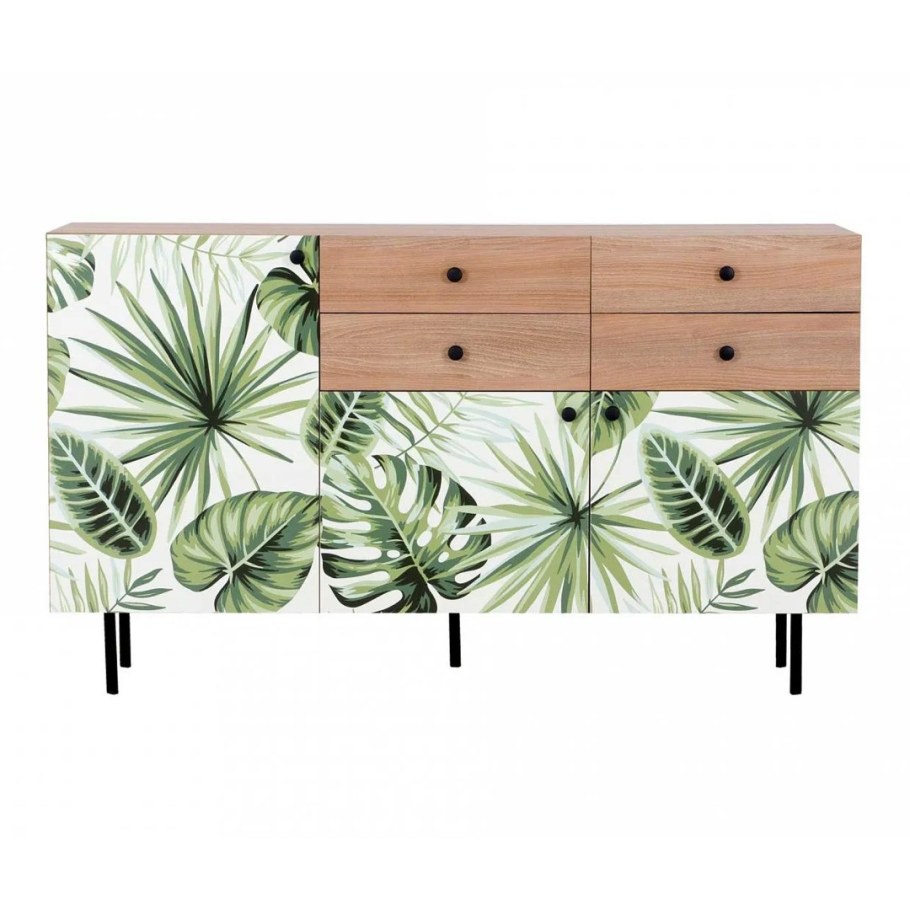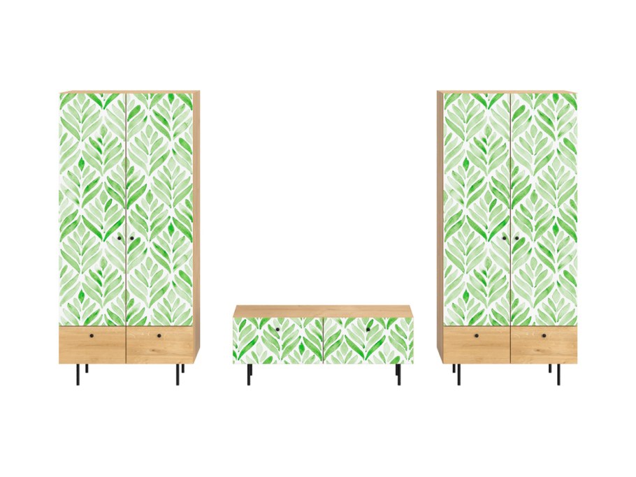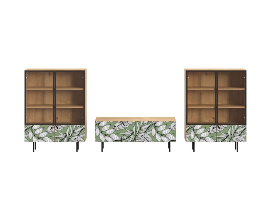 Тумба под TV Frida с принтом Monstera на деревянных ножках