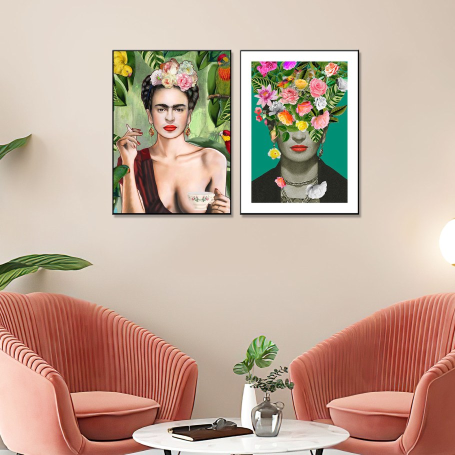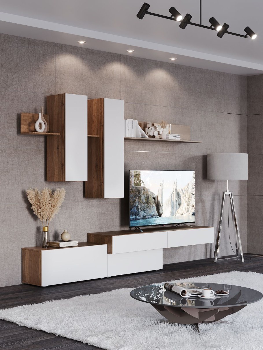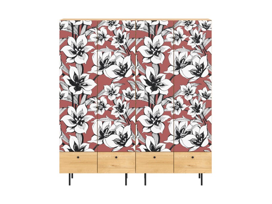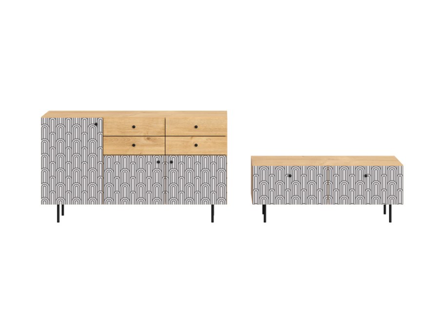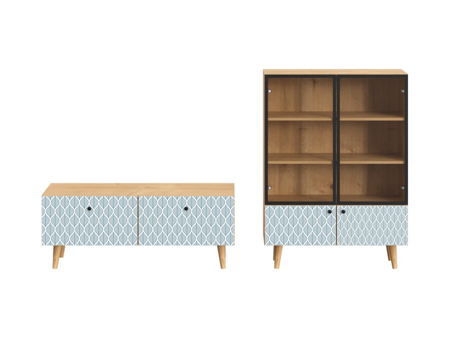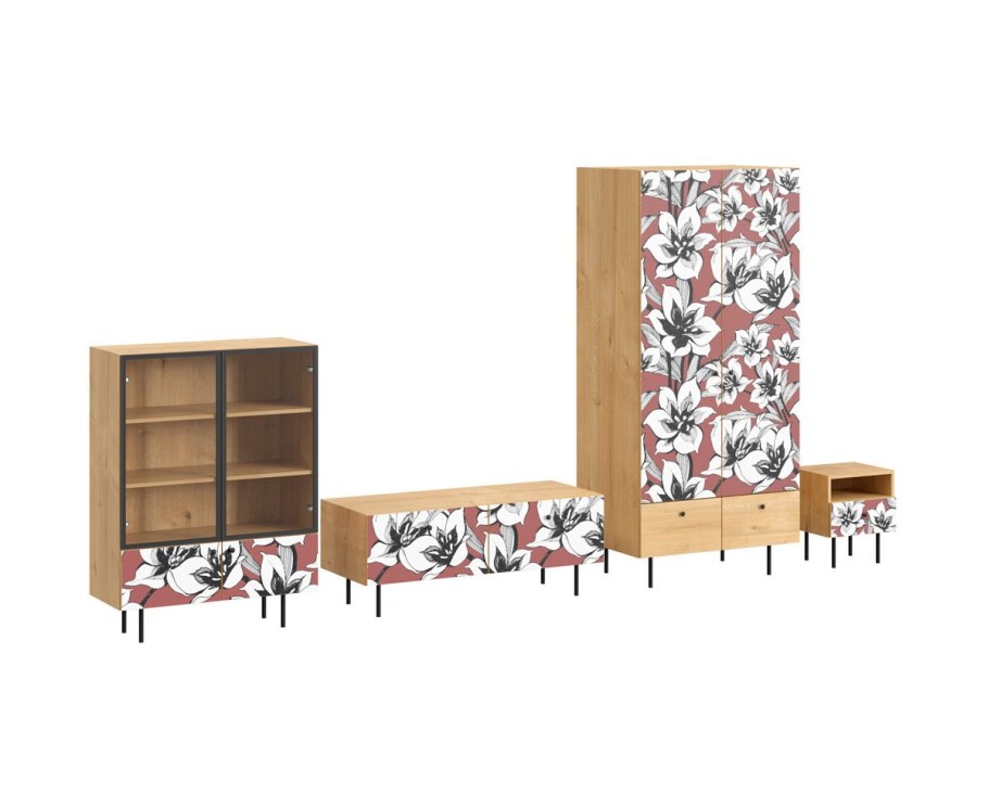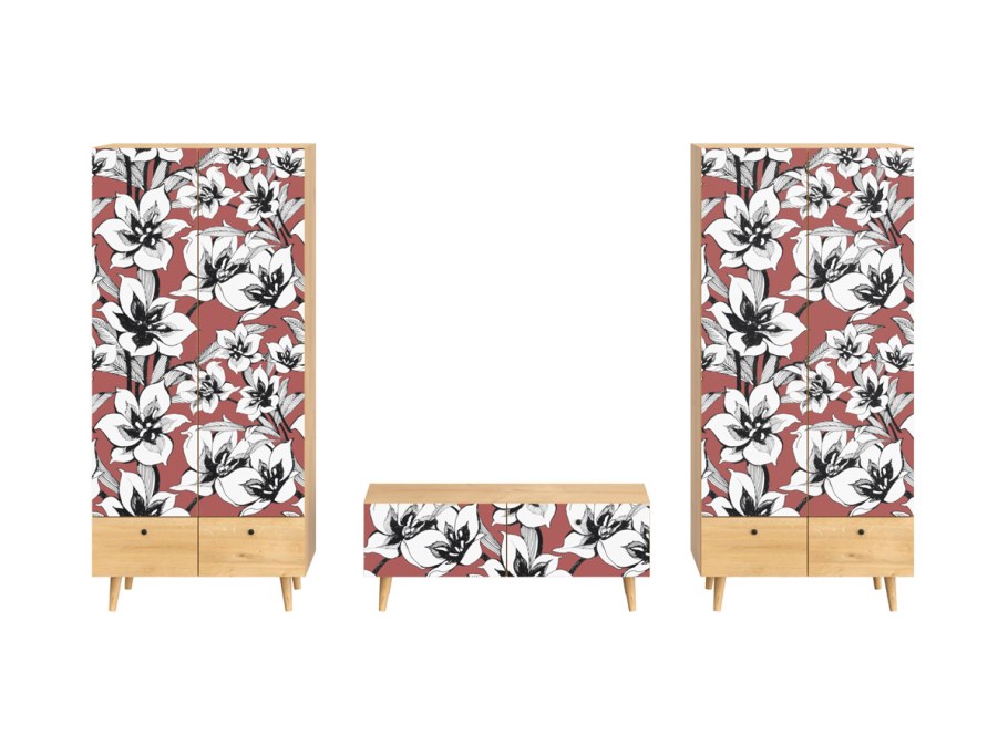 Тумба под TV Frida с принтом Monstera на деревянных ножках