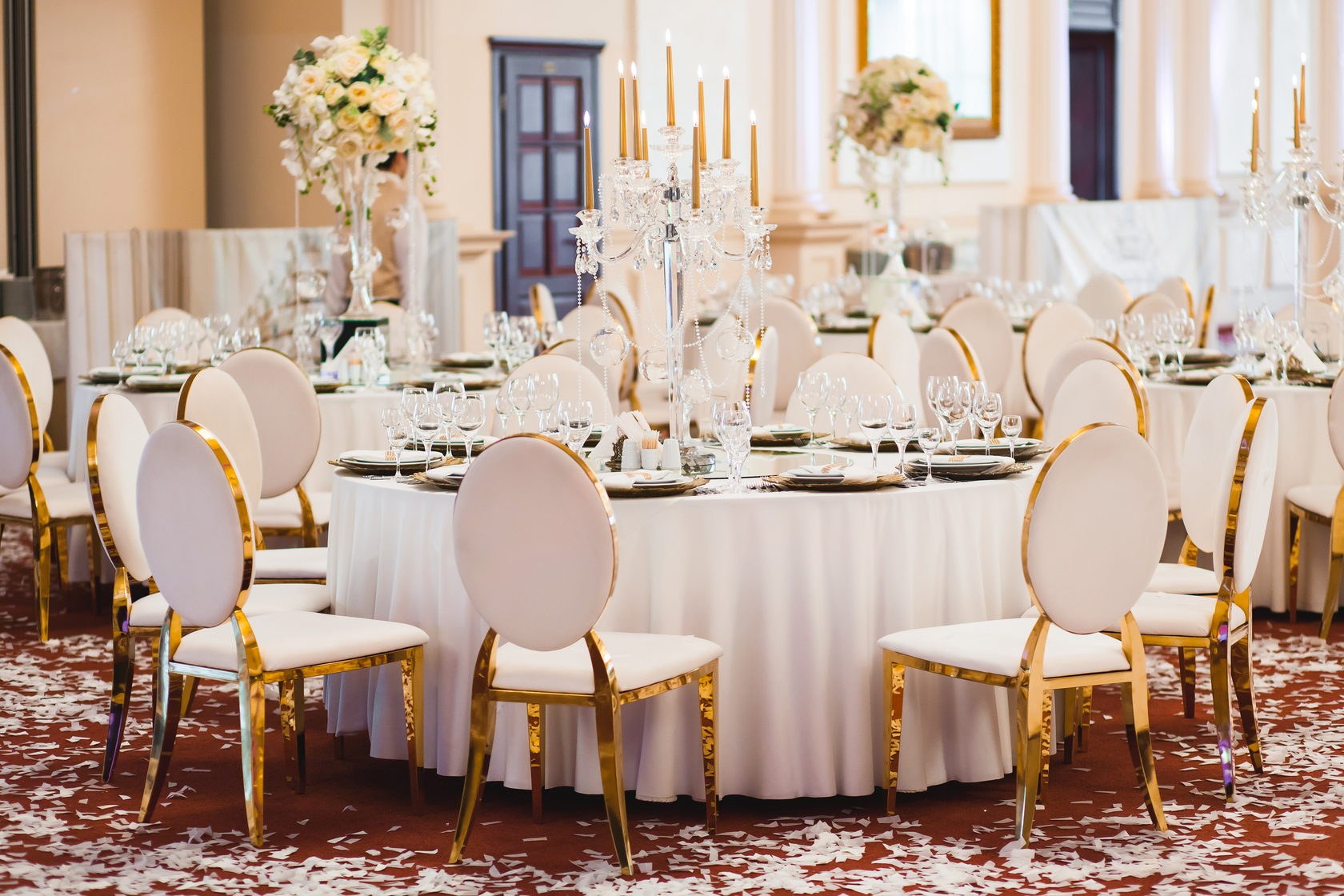 Стул банкетный St-020 25мм каркас золотой обивка бежевая