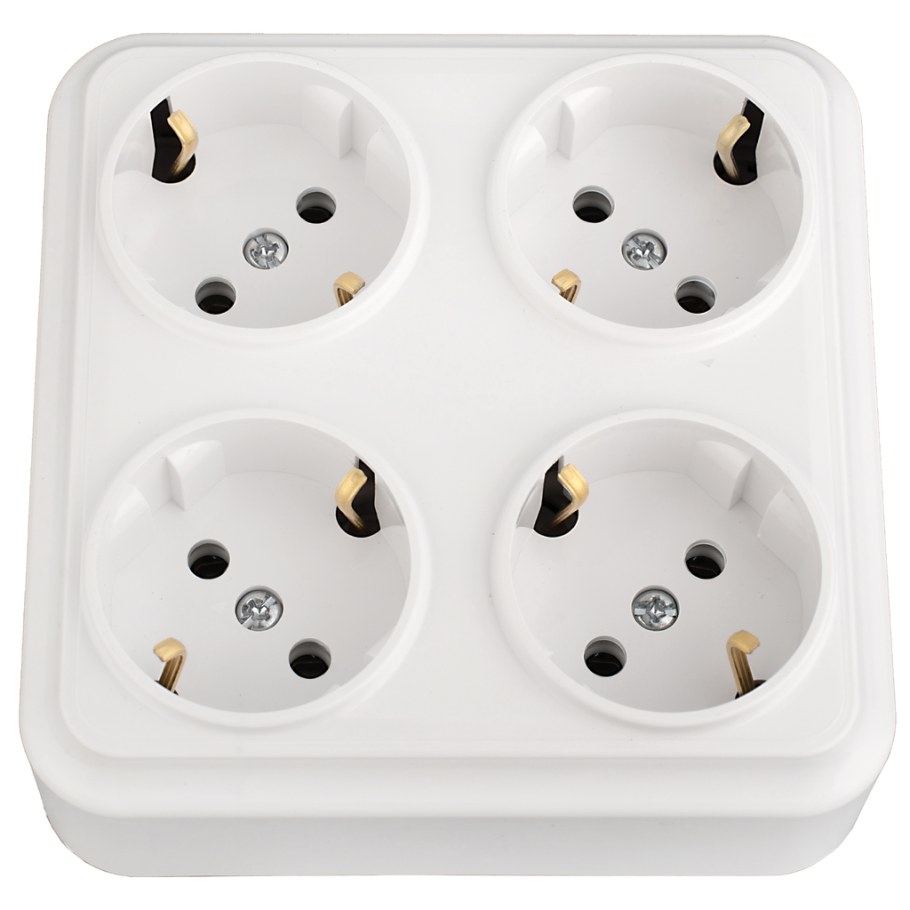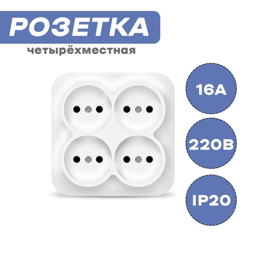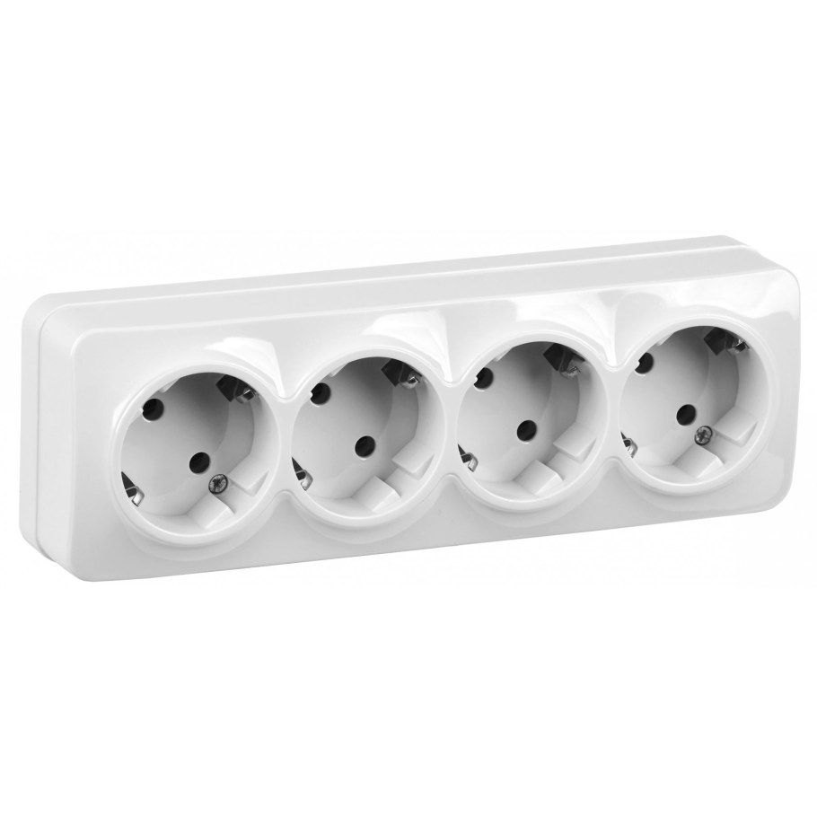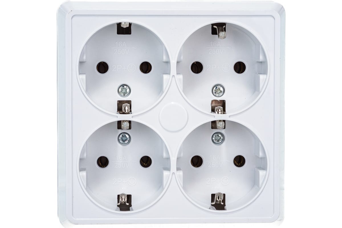 Розетка четырехместная ОП 16а ip20 с заземлением белая квадрат ionich 1449