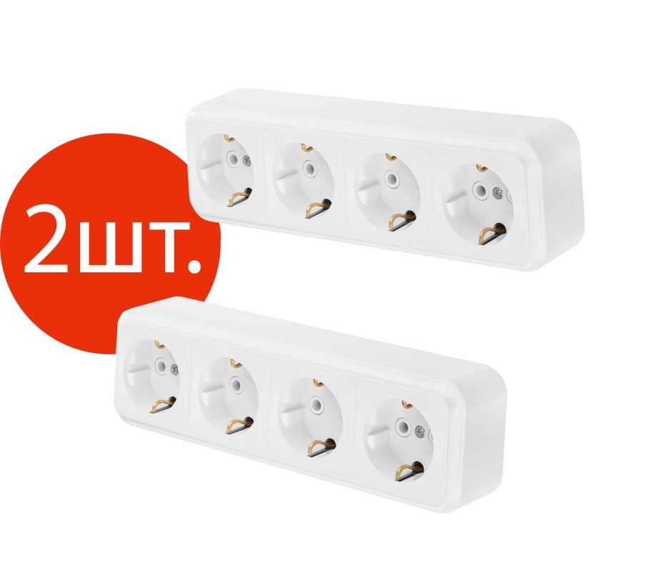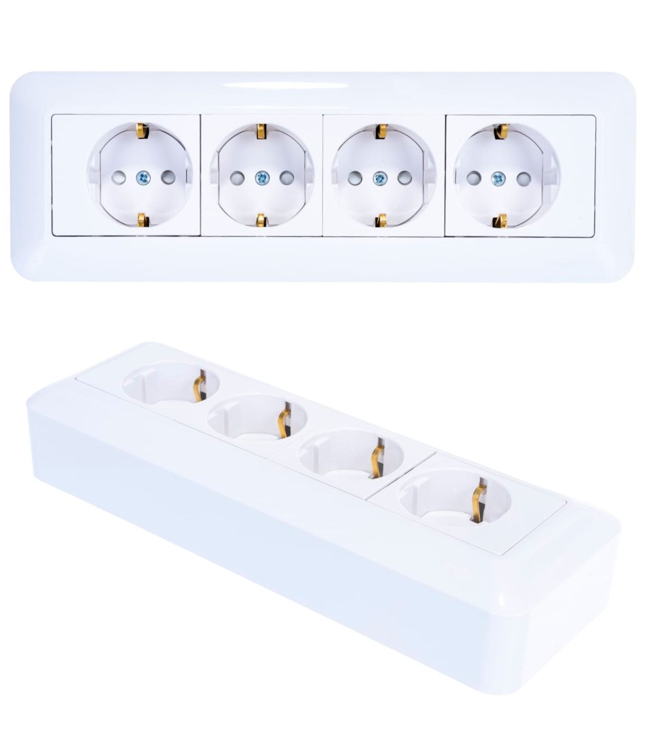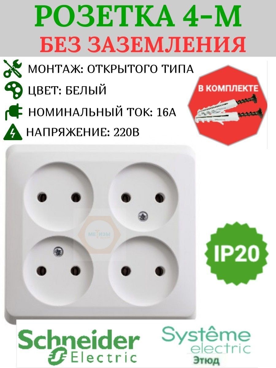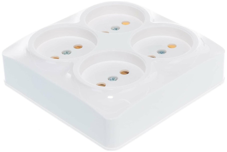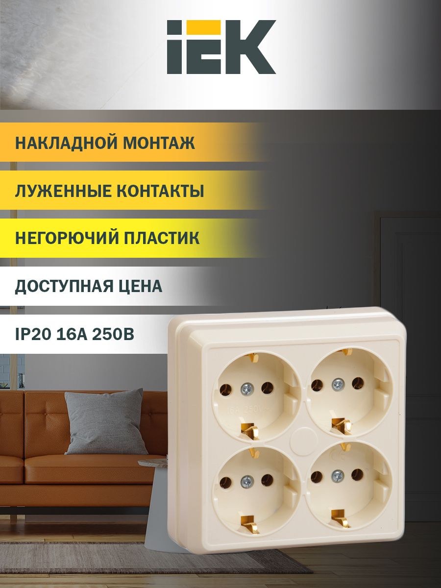 Розетка четырехместная ОП 16а ip20 с заземлением белая квадрат ionich 1449